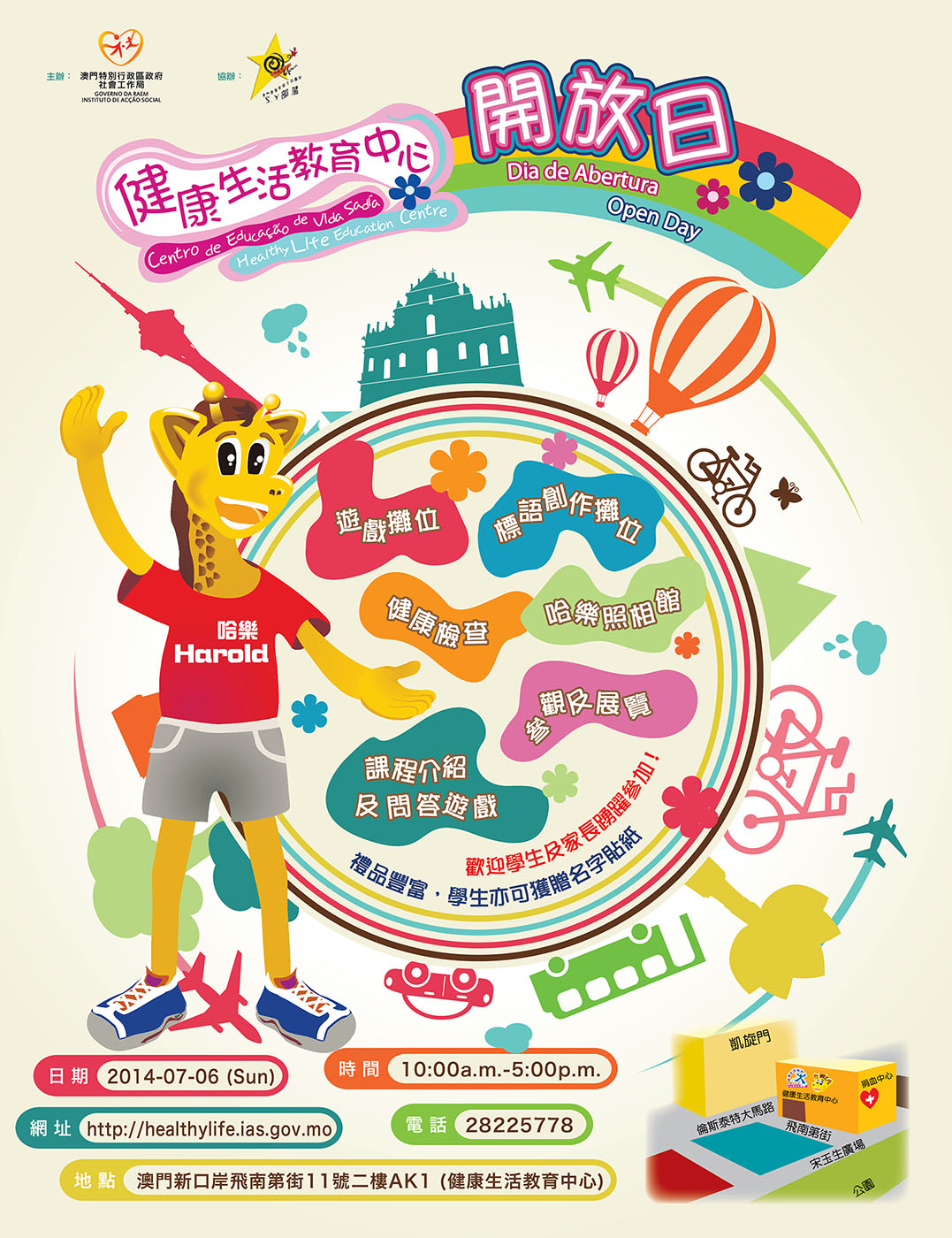 A actividade do “Dia de Abertura do Centro de Educação de Vida Sadia” é organizada pelo Instituto de Acção Social e co-organizada pela Confraternidade Cristã Vida Nova de Macau Extensivo aos Jovens Consumidores de Drogas (Tribo S.Y.), e realizar-se-á a 6 de Julho (Domingo), pelas 10h00 às 17h00, no Centro de Educação de Vida Sadia, sito na Rua Francisco H. Fernandes,n.º 11, 2.º andar - AK1, para que os alunos e os seus familiares conheçam os trabalhos do Centro, e se promovam as mensagens da vida sadia e da prevenção do abuso da droga.