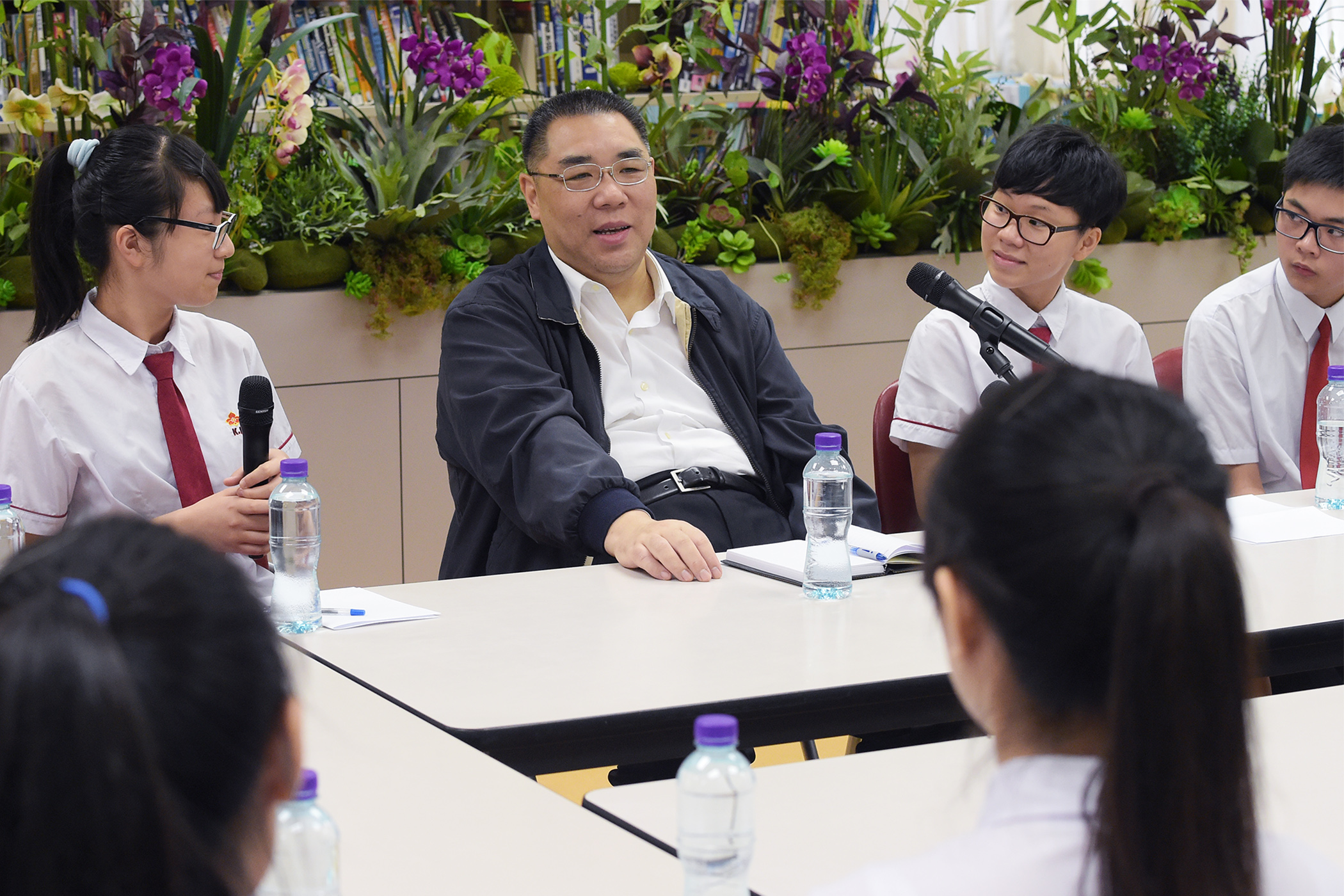 Chui Sai On, acompanhado pelo director e subdirector da Escola Keang Peng, Lai Sai Kei e Kou Tong Meng, conversou com cerca de 20 alunos do ensino secundário e finalistas. Durante o encontro que durou 90 minutos, os alunos mostraram-se interessados em vários temas, designadamente nas opções para prosseguirem os estudos, exame unificado de acesso ao ensino superior e o desenvolvimento do ensino local, desenvolvimento da economia, futuras oportunidades de emprego em Macau, bem como as possibilidades de se tornarem jovens empresários. Abordaram ainda a insuficiência de recintos desportivos, a utilização dos solos locais, legislação do salário mínimo e ainda os trabalhos sobre a regulação dos serviços de táxi.