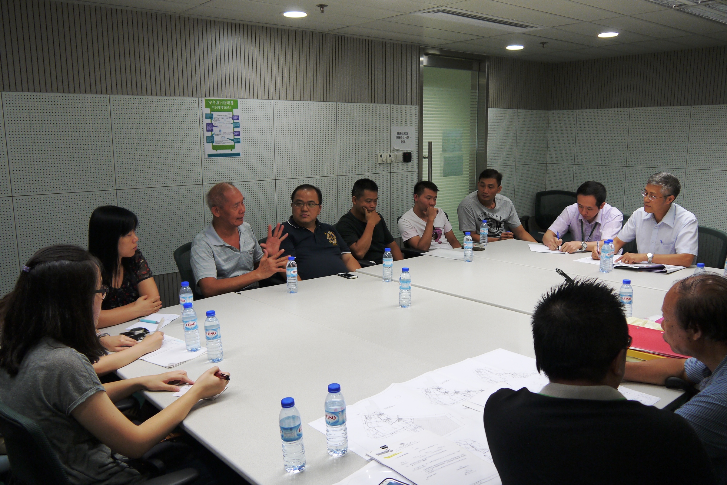 O Chefe do Departamento de Urbanização da DSSOPT, Chan Weng Hei, e os seus colaboradores convocaram no passado dia 28 de Julho uma reunião com representantes dos condóminos do Edf. Man Sun, vizinho ao aludido estaleiro de obra, que contou ainda com a presença do presidente do Conselho de Administração da Associação dos Moradores do Patane, Lok Nam Tak, e os representantes do dono da obra, do empreiteiro e o director técnico da obra, no sentido de ouvir as exigências dos condóminos e criar uma plataforma de diálogo bilateral.