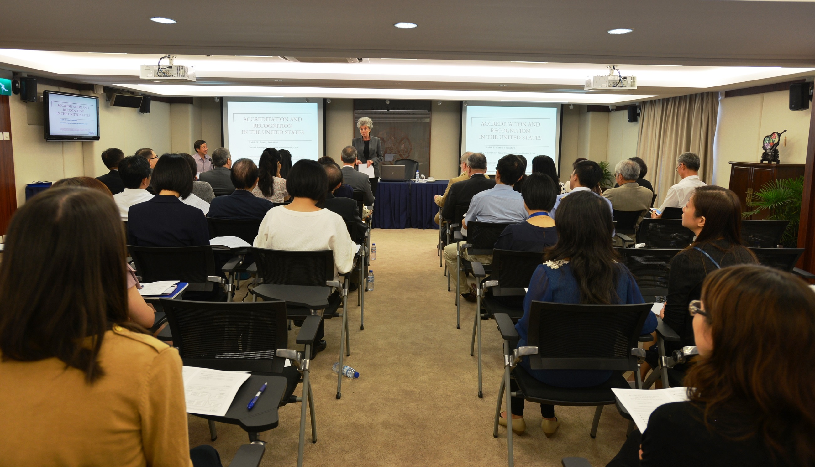 O Gabinete de Apoio ao Ensino Superior convidou, recentemente, a Dra. Judith S. Eaton, presidente do Conselho de Acreditação do Ensino Superior dos Estados Unidos da América (Council for Higher Education Accreditation), para se deslocar a Macau, para apresentar o sistema de garantia de qualidade do ensino superior deste país e partilhar as respectivas experiências com os dirigentes das instituições do ensino superior de Macau e demais pessoal relacionado.