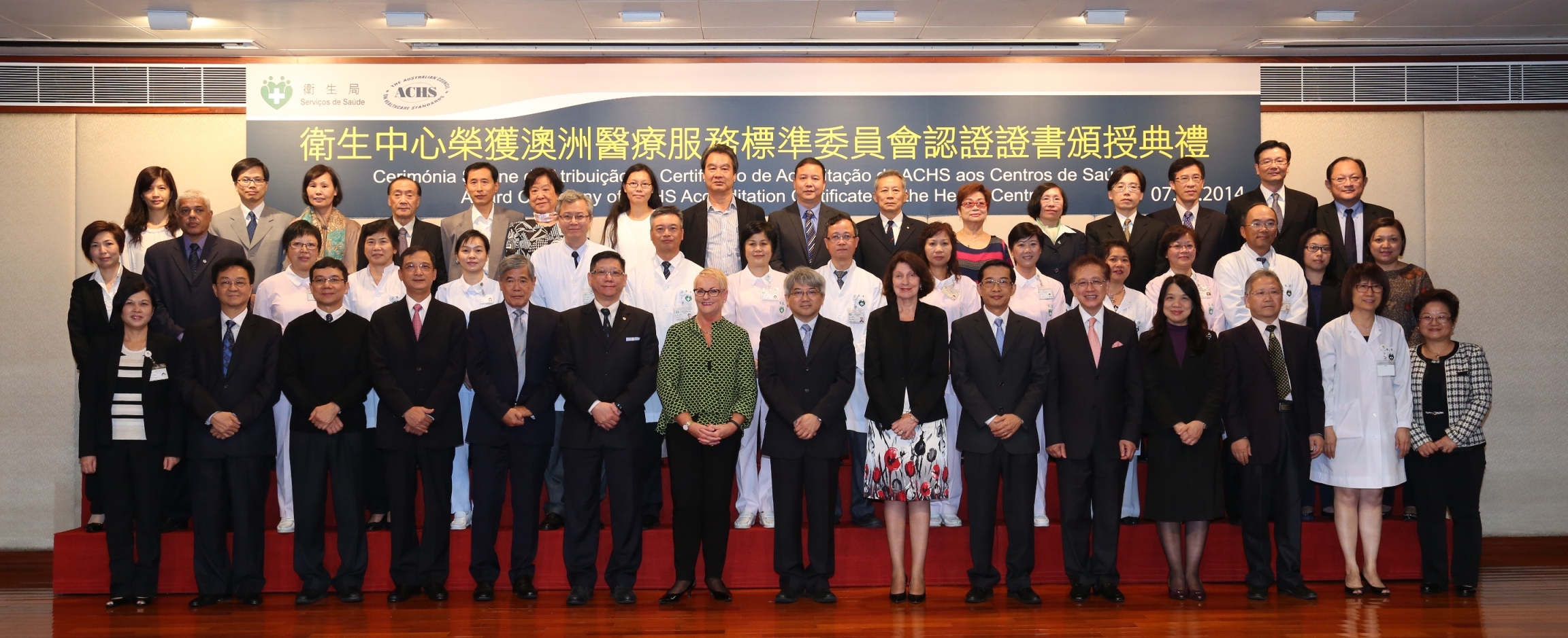 A “Cerimónia de entrega de certificado de acreditação pelo ACHS aos Centros de Saúde” foi realizada hoje (dia 7 de Novembro) no Centro de Saúde da Areia Preta, e contou com a presença do presidente do Conselho Australiano de Normas de Saúde (sigla em inglês, ACHS), Karen Linegar, a directora-presidente, Christine Dennis, e o director-executivo, Desmond Yen, que pessoalmente entregaram os certificados de acreditação aos representantes dos 6 centros de saúde.