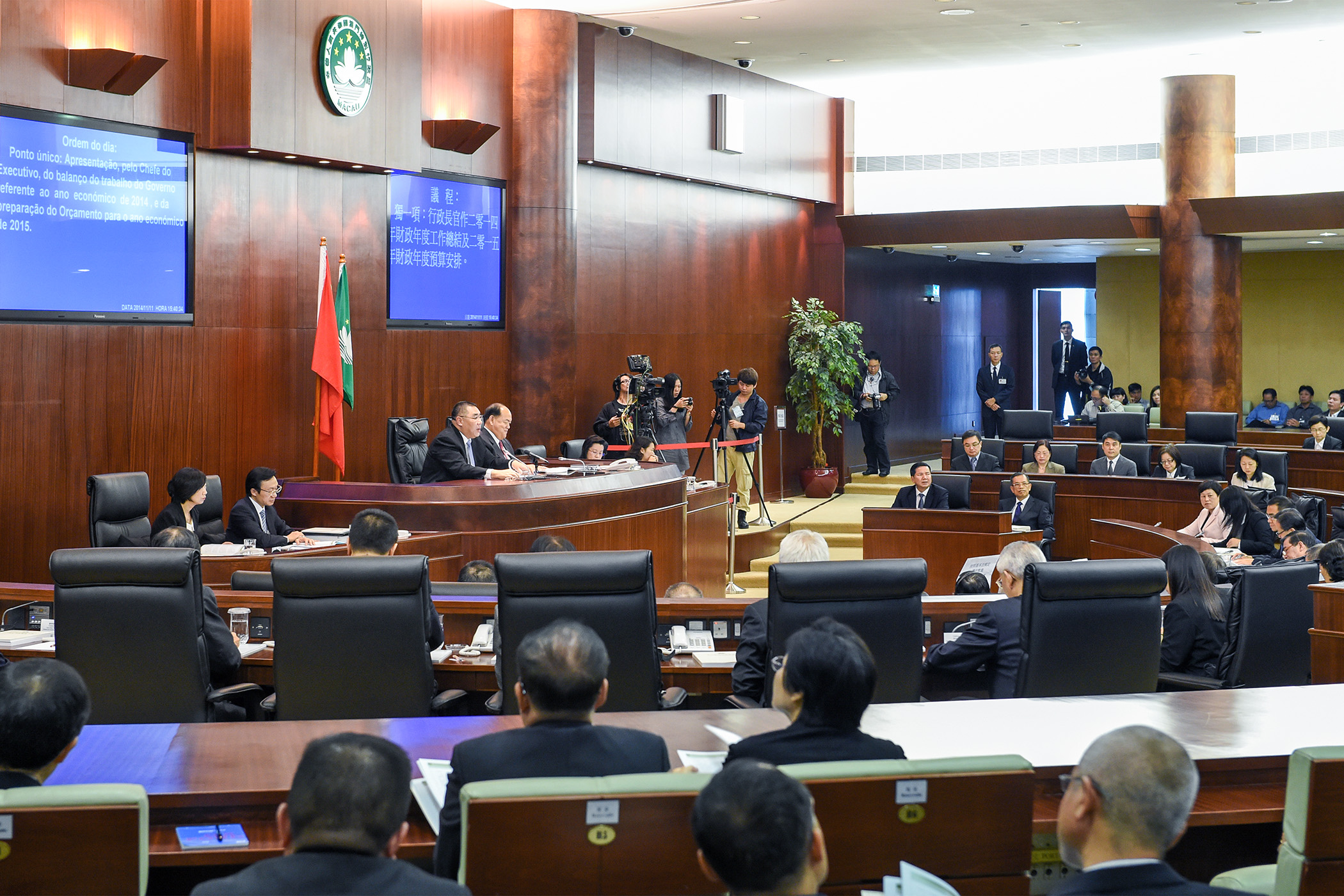 Chui Sai On disse que o próximo Governo apresentará, à Assembleia, no primeiro trimestre de 2015, o Relatório das Linhas de Acção Governativa para o Ano Financeiro de 2015. Acrescentou que para garantir a estabilidade, o desenvolvimento da Região Administrativa Especial de Macau (RAEM) e o normal funcionamento dos serviços públicos, e em cumprimento das exigências previstas na lei, o actual Governo elaborou as bases do orçamento referente ao ano financeiro de 2015, o qual contempla, essencialmente, as despesas administrativas indispensáveis ao normal funcionamento dos serviços públicos, os encargos assumidos pelo Governo para o próximo ano e as dotações de verbas para as obras públicas referentes ao primeiro trimestre do próximo ano.