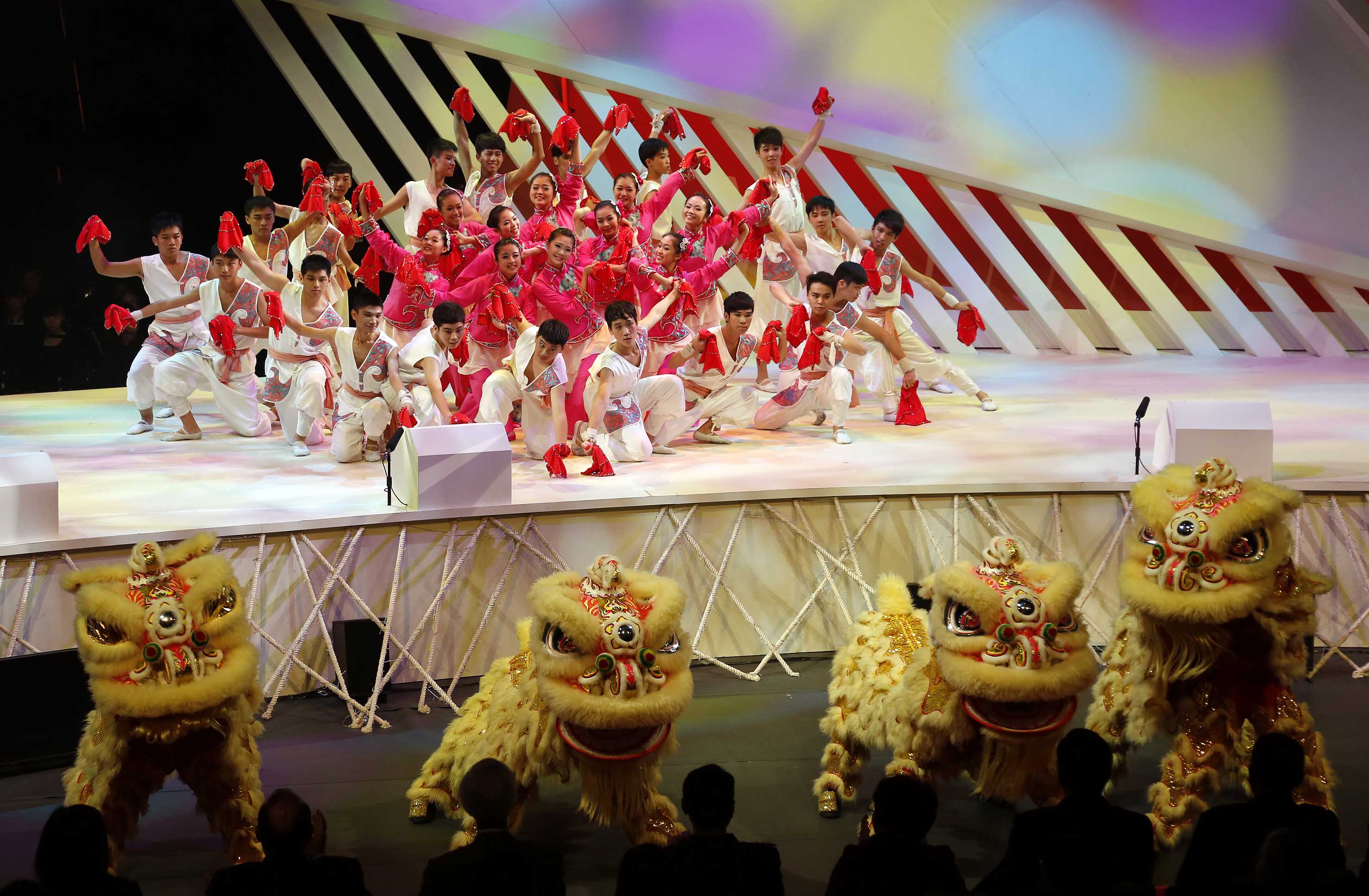 A noite contou com a presença do Secretário para os Assuntos Sociais e Cultura da RAEM, Cheong U, do Chefe do Departamento de Cultura e Educação do Gabinete de Ligação do Governo Popular Central na RAEM, Lio Xiaohang, da Directora da Direcção dos Serviços de Educação e Juventude, Leong Lai, do Director do Departamento para os Assuntos Gerais do Comissariado do Ministério dos Negócios Estrangeiros da República Popular da China na RAEM, Li Zhen Hua, do Subdirector do Departamento dos Assuntos de Política da Guarnição em Macau do Exército de Libertação do Povo Chinês, Zeng Zhendong do Bispo da Diocese de Macau, José Lai Hung Seng, do Presidente do Conselho de Administração do Fundo das Indústrias Culturais da RAEM, Leong Heng Teng, do Presidente do Conselho de Administração do Fundo para o Desenvolvimento das Ciências e da Tecnologia, Ma Chi Ngai, do Coordenador da Comissão do Grande Prémio de Macau, João Manuel Costa Antunes, da Presidente, Substituta, do Instituto de Acção Social, Vong Yim Mui, da Chefe, Substituta, do Gabinete do Cidadão do Instituto para os Assuntos Cívicos e Municipais, Lam Mei Sio, da Presidente da Associação de Educação de Macau, Ho Sio Kam, do Presidente da Associação das Escolas Católicas de Macau, Padre Chow Pak Fai, da Presidente da Assembleia Geral da Associação Educativa da Função Pública de Macau, Ho Si Neng, do Presidente da Associação dos Artistas de Belas-Artes de Macau, Lai Ieng e ainda de membros do Conselho de Juventude, do Conselho de Educação para o Ensino Não Superior e do Conselho Profissional do Pessoal Docente e, ainda, dos directores das escolas que foram convidados a participar nas respectivas actividades. No final, os convidados e o elenco do espectáculo juntaram-se para a fotografia de grupo.