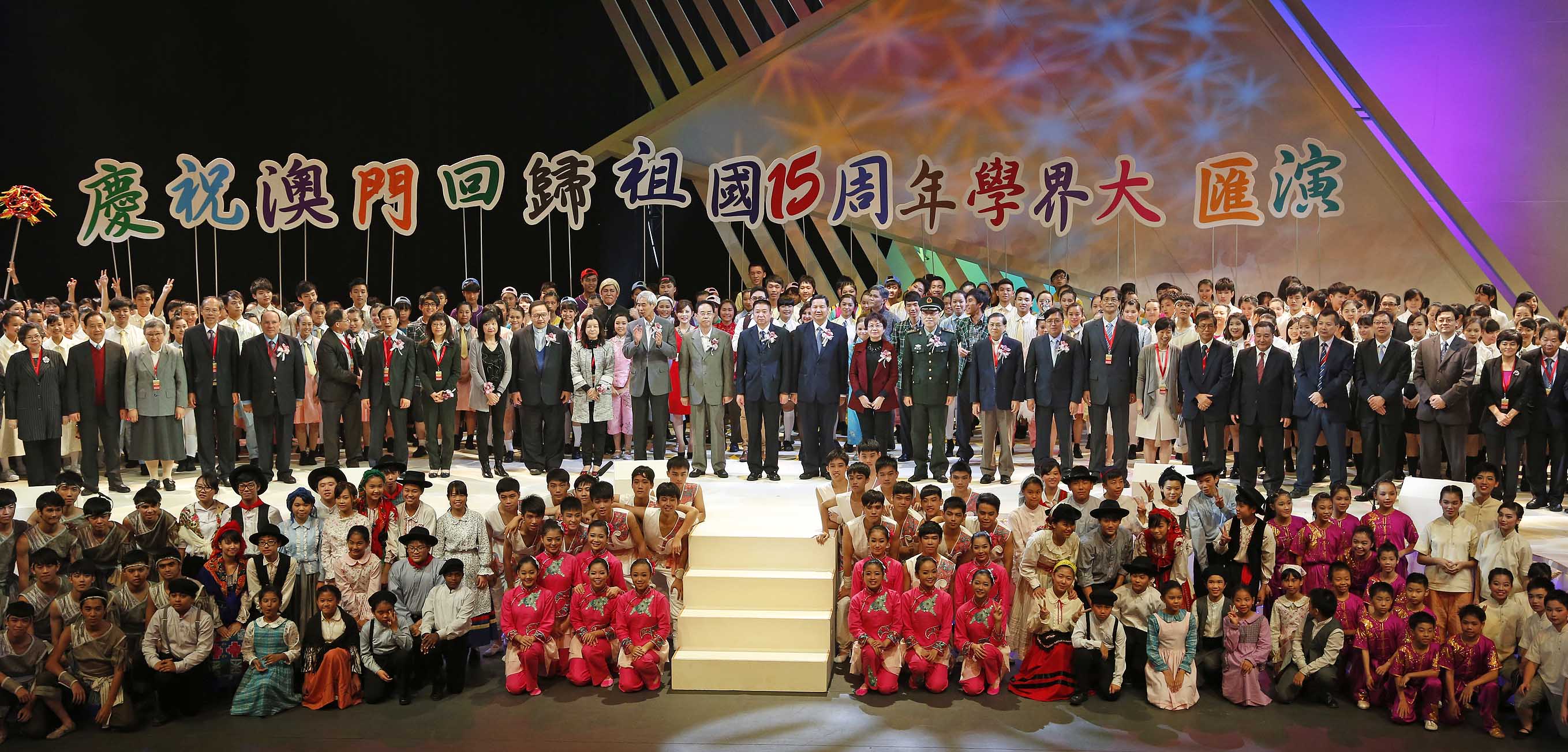 O Espectáculo Escolar que tem por tema a “Celebração dos 15 anos da transferência da administração de Macau para a China e Construir o sonho de criar um belo futuro”, organizado pela Direcção dos Serviços de Educação e Juventude (DSEJ) em colaboração com o Instituto para os Assuntos Cívicos e Municipais (IACM), Associação de Educação de Macau, Associação das Escolas Católicas de Macau e a Associação Educativa da Função Pública de Macau, com o apoio da Associação dos Artistas de Belas-Artes de Macau, teve lugar no Pavilhão I do Fórum de Macau, no dia 20 de Novembro. O conteúdo do espectáculo centrou-se nas experiências de vários jovens de Macau ao longo de uma viagem pela história da região.