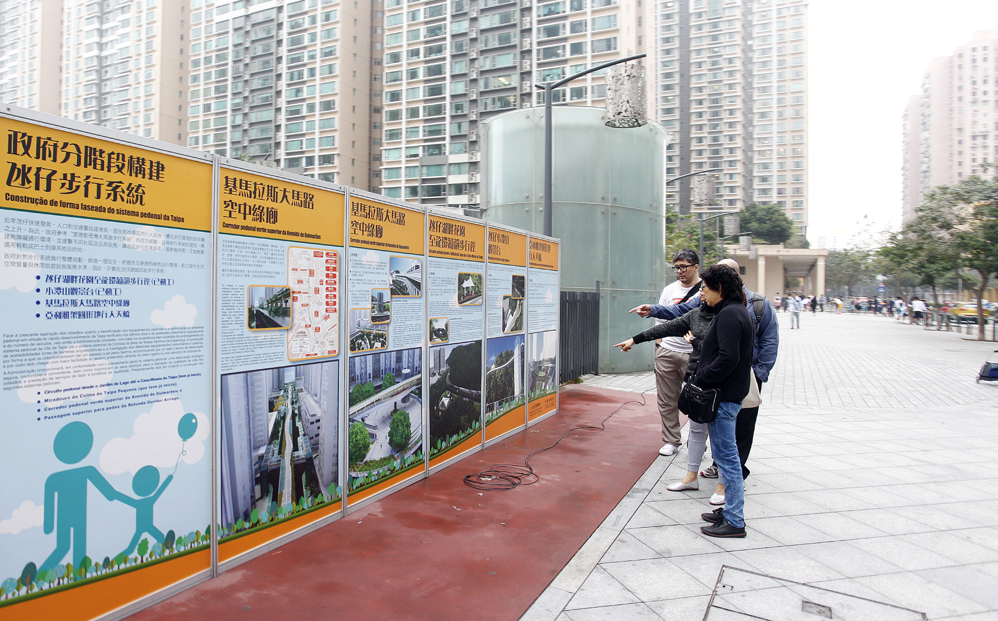 A DSSOPT e a DSAT irão através de diversas formas melhor aclarar junto da população o projecto de construção do corredor pedonal verde superior da Avenida de Guimarães, e ainda através da realização de inquérito procurar conhecer o grau de adesão dos cidadãos quanto à sua construção e os aspectos que mereceram a sua maior atenção. Além disso, serão ainda progressivamente realizadas nos vários bairros sessões de apresentação e distribuídos panfletos informativos e posters de modo a permitir aos cidadãos melhor conhecerem a concepção e as características da obra. À semelhança da colocação no ano passado de painéis de exposição para a presentação da sua concepção preliminar, a DSSOPT e a DSAT irão novamente colocar painéis de exposição para apresentação do projecto de construção do corredor pedonal verde superior da Avenida de Guimarães e dos demais sistemas pedonais da Taipa, com o período de exposição até 30 de Janeiro do próximo ano.