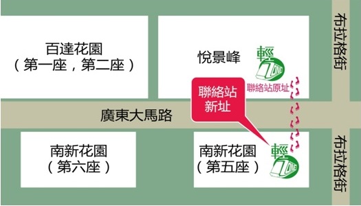 A Estação de Contacto do Metro Ligeiro na Taipa - LRT Zone (adiante designado por "Estação de Contacto") mudará para o lado oposto, ou seja, para o Edifício Nam San, Bloco 5, Rés-do-Chão, Loja O, e continuará a prestar serviços aos cidadãos. O Gabinete para as Infra-estruturas de Transportes espera manter uma boa comunicação com os cidadãos a longo prazo, aumentando o grau de transparência da construção do Metro Ligeiro.