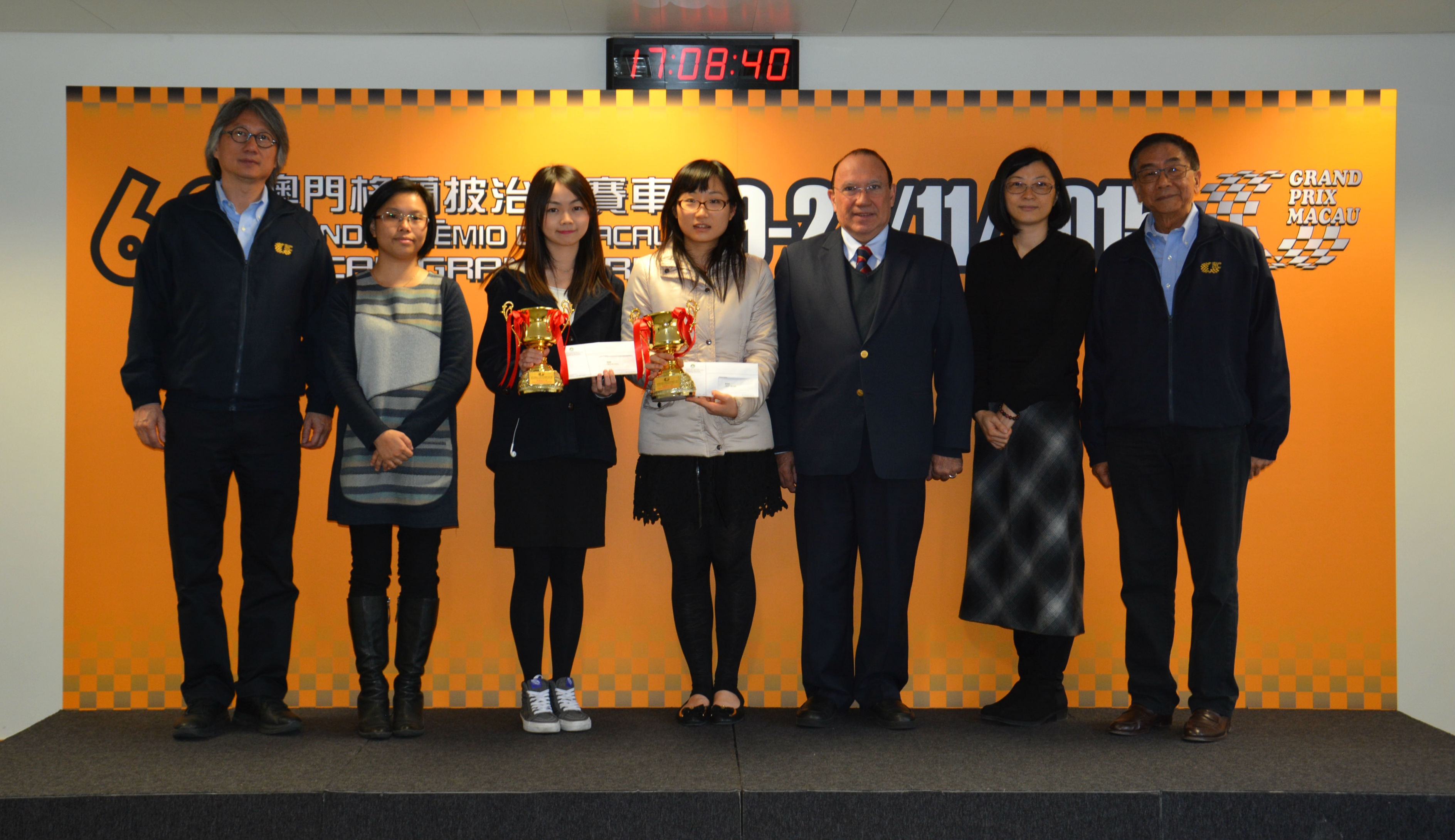 A cerimónia da entrega dos prémios teve lugar às 17h00 no Edf. do Grande Prémio, com os prémios apresentados pelo Coordenador da Comissão do Grande Prémio, Eng. João Manuel Costa Antunes, e representante do GAES, Sra. Hong Wai Man, contando com a presença do júri. Foram recebidas 10 obras, e os padrões de avaliação são, respectivamente, a conformidade da obra com o tema, a creatividade do conceito e a funcionalidade ou utilidade do jogo. Os dois vencedores são Chan Mei Kei, da Universidade de Macau e Chan Ka Weng do Instituto da Formação Turística.