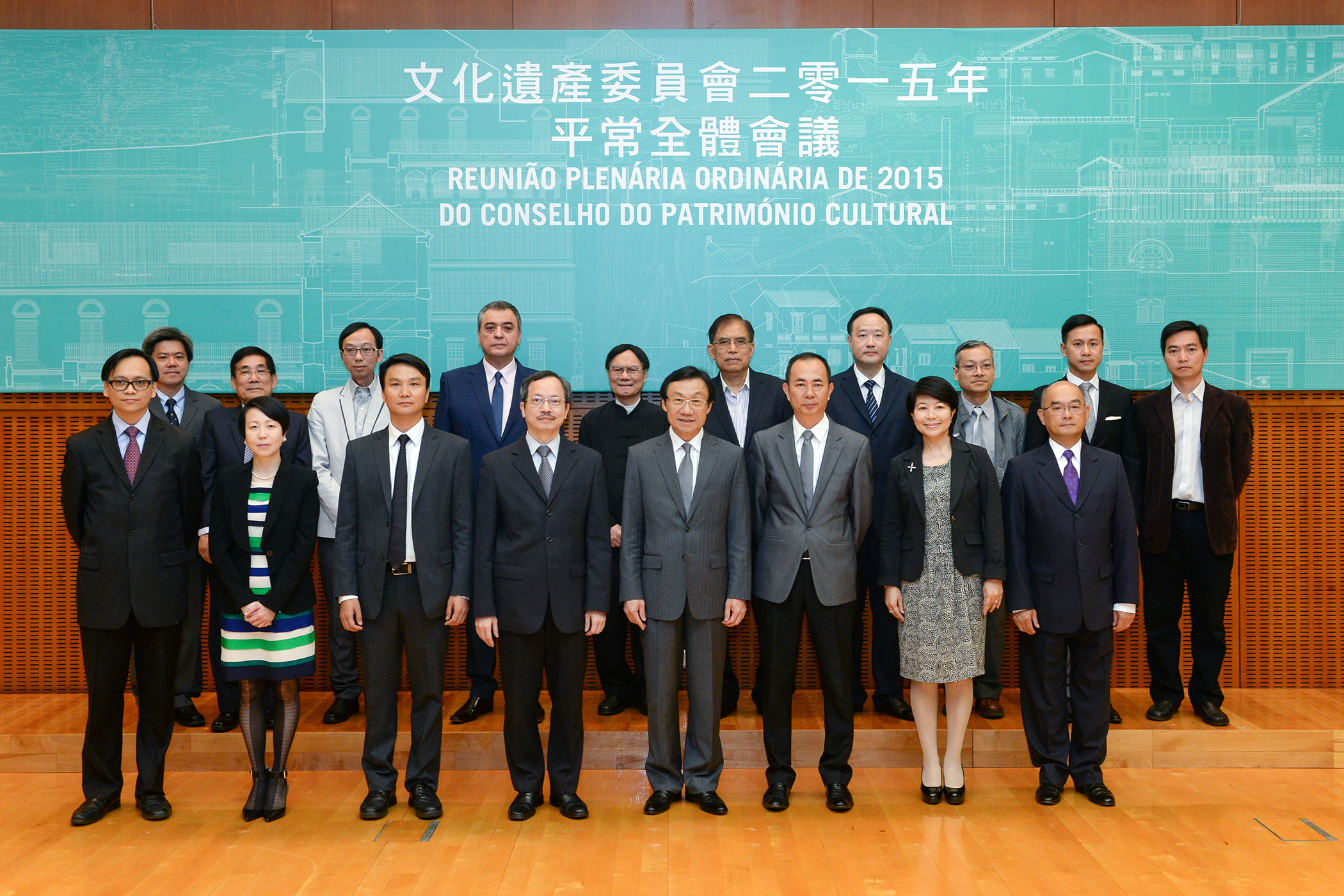 Estiveram presentes na reunião o Presidente do Conselho do Património Cultural, Doutor Alexis Tam; o Chefe do Gabinete do Secretário para os Assuntos Sociais e Cultura, Lai Ieng Kit; o Vice-Presidente do Conselho do Património Cultural, Ung Vai Meng; o Secretário-Geral do Conselho do Património Cultural, Cheong Cheok Kio; a Representante do Gabinete do Secretário para os Assuntos Sociais e Cultura, Lam Wan Nei; a Representante do Director dos Serviços de Assuntos de Justiça, Leong Mei Leng; o Representante do Presidente do Conselho de Administração do Instituto para os Assuntos, Cívicos e Municipais, Choi Chi Hong; o Representante do Director dos Serviços de Solos, Obras Públicas e Transportes, Leong Io Hong; os membros do Conselho do Património Cultural, Lau Veng Seng, José Lau Chit Meng, Carlos Alberto dos Santos Marreiros, Cheang Kok Keong, Lei Ip Fei, Tam Chi Wai, Lam Fat Iam, Lui Chak Keong, Lam Chi Chiu e Ho Ka Lon, entre outros.