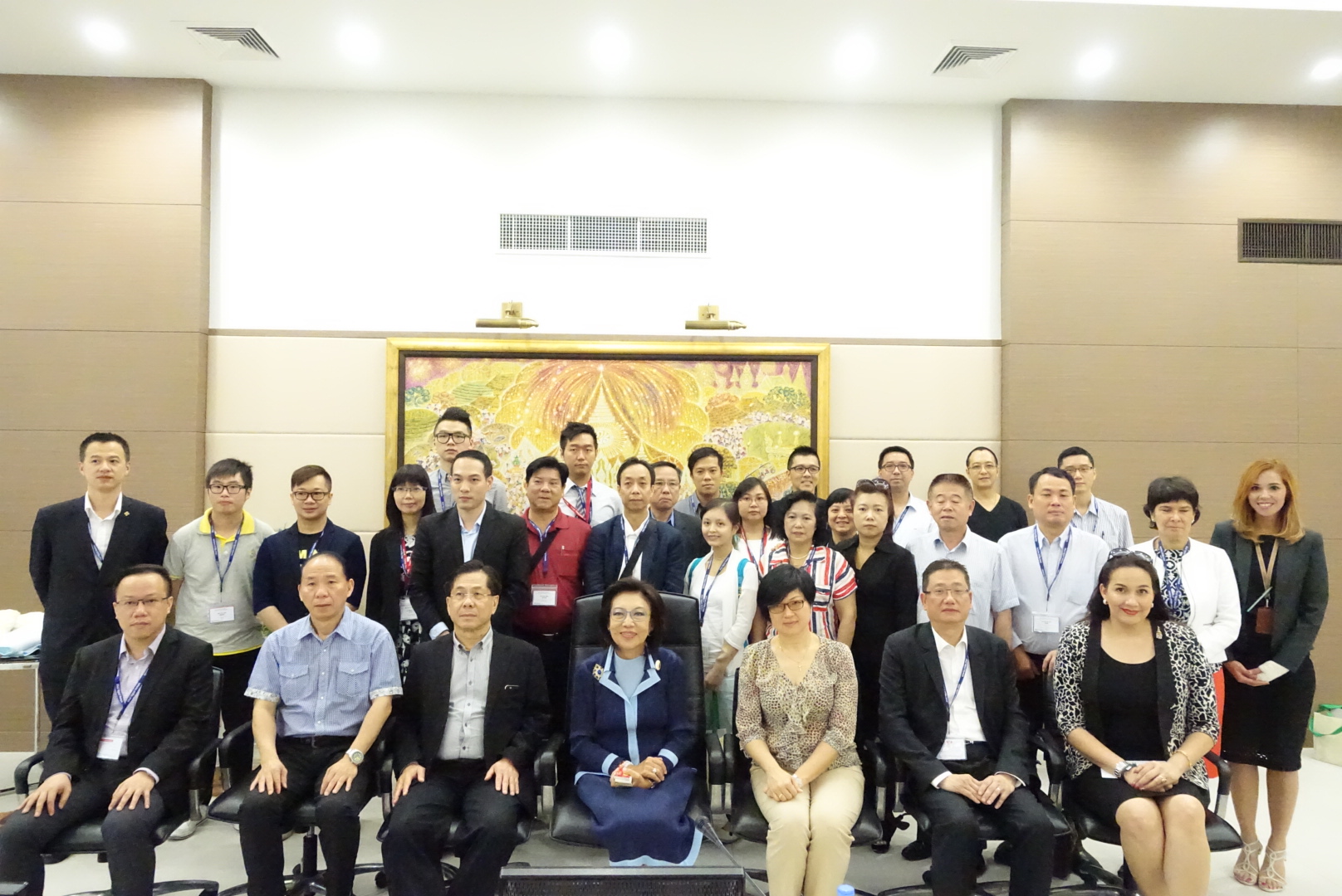 Durante a estadia em Bangquecoque, a Vogal Executiva do IPIM, Dra. Glória Batalha Ung e parte dos membros da Delegação Empresarial de Macau efectuaram uma visita de cortesia ao Departamento de Promoção do Comércio Internacional, subordinado ao Ministério do Comércio da Tailândia, tendo o Sub-Chefe do referido Departamento, Sr. Supapat Ongsangkoon, feito uma apresentação sobre a situação mais recente do ambiente de investimento na Tailândia. Teve também lugar a troca de opiniões amistosa sobre o comércio de importações e exportações e as regras em vigor. Por sua vez, a Vogal Executiva do IPIM, Dra. Glória Batalha Ung, fez uma intervenção sobre a situação do desenvolvimento em Macau, e o ambiente económico da RAEM. A Delegação Empresarial de Macau visitou também o Saha Group Thailand, estabelecido em 1942, com sede em Banguecoque e mais de 200 subsidiárias espalhadas pelo país, empregando acima de 100 mil trabalhadores. Dedica-se à comercialização de produtos alimentares e bebidas, vestuário, têxteis, produtos electrónicos, utensílios domésticos e cosméticos, entre outros, e é, presentemente, um dos maiores conglomerados da Tailândia. Os membros da Delegação Empresarial efectuaram intercâmbio e comunicação com a Presidente do referido grupo, Sra. Chantra Purnariksha e seu pessoal, e manifestaram interesse nos produtos comercializados pelo referido grupo, incluindo cosméticos, artigos de vestuário, embalagem e suprimentos, e efectuaram negociações in loco sobre oportunidades de cooperação.