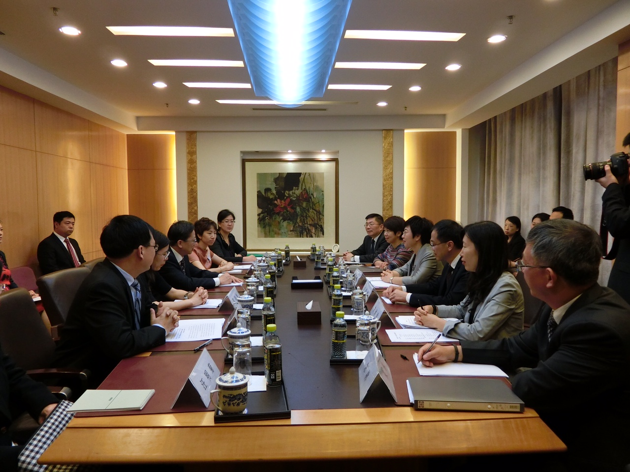 No dia 3 de Junho de manhã, a delegação da Secretária Chan teve encontro com a direcção e alguns professores do Instituto Nacional de Administração. As duas partes recordaram os resultados da cooperação dos últimos anos e trocaram ideias sobre o rumo de desenvolvimento na formação dos trabalhadores dos serviços públicos e o reforço do intercâmbio e cooperação entre as duas partes. A Secretária Chan referiu que o novo Governo da RAEM tem, como objectivo, criar “um centro, uma plataforma” e, como estratégia de governação, a racionalização de quadros e simplificação administrativa. Ela espera que o Instituto Nacional de Administração continuaria a apoiar com todo o empenho o Governo da RAEM no sentido de, através de formação, aumentar a qualidade dos funcionários públicos para acompanhar as exigências de governação do Governo da RAEM.