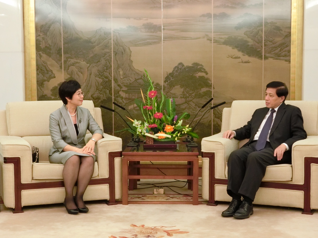No dia 2 de Junho, de manhã, a delegação chefiada pela Secretária para a Administração e Justiça, Sónia Chan Hoi Fan, visitou o Ministério dos Negócios Estrangeiros e teve um encontro com o director Xu Hong e outros dirigentes do Departamento de Tratados e Leis do mesmo Ministério. As duas partes discutiram sobre os assuntos relativos ao aperfeiçoamento da aplicação de convenções internacionais multilaterais e bilaterais a Macau, à defesa dos interesses da estado e da RAEM nos negócios do direito internacional, assim como ao reforço da formação em direito internacional dos trabalhadores dos serviços públicos da RAEM. Na parte da tarde do mesmo dia, o vice-ministro Zhang Yesui do Ministério dos Negócios Estrangeiros recebeu a delegação da Secretária Chan. Primeiro, deu as boas-vindas, tendo referido que o Ministério, conforme o disposto na Lei Básica da Região Administrativa Especial de Macau, iria apoiar com todo o empenho a governação de acordo com as leis do Governo da RAEM, nomeadamente o apoio ao Governo da RAEM no alargamento dos intercâmbios e cooperações com o exterior, bem como a prestação da protecção consular aos residentes de Macau. A Secretária Chan agradeceu o grande apoio e instruções ao longo dos anos do Ministério dos Negócios Estrangeiros ao Governo da RAEM e afirmou que, sob a liderança do Chefe do Executivo Chui Sai On, o Governo da RAEM encontra-se a explorar activamente as novas oportunidades de cooperação regional no enquadramento da estratégia de desenvolvimento “uma faixa, uma rota”, no sentido de estabelecer melhor o centro mundial de turismo e lazer de Macau, desenvolver melhor o papel de Macau como a plataforma de serviços de cooperação económica entre a China e os países de língua portuguesa, potenciando assim mais o desenvolvimento da diversificação económica de Macau.