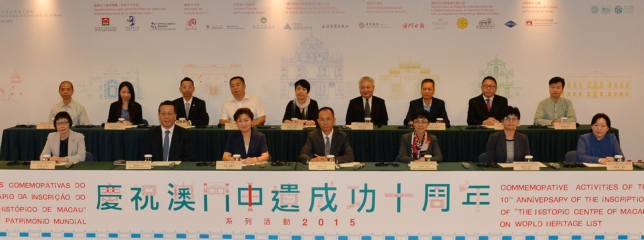 Estiveram presentes na conferência de imprensa, que teve lugar no Centro de Convenções e Entretenimento da Torre de Macau, no dia 10 de Julho, pelas 12:00horas, o Presidente do Instituto Cultural do Governo da R.A.E. de Macau, Ung Vai Meng; a Vice-Directora do Departamento de Cultura da Província de Henan, Kang Jie; o Chefe da Divisão de Património Cultural Imaterial do Departamento de Cultura da Província de Henan, Liu Chunxiao; a Directora da Direcção dos Serviços de Turismo do Governo da R.A.E. de Macau, Maria Helena de Senna Fernandes; o Presidente do Instituto de Desporto do Governo da R.A.E. de Macau, José Maria da Fonseca Tavares; a Presidente da Direcção dos Serviços de Correios do Governo da R.A.E. de Macau, Lau Wai Meng; a Vice-presidente da Direcção dos Serviços de Educação e Juventude do Governo da R.A.E. de Macau, Kuok Sio Lai; a Chefe do Departamento do Património Cultural do Instituto Cultural do Governo da R.A.E. de Macau, Substituta, Leong Wai Man, o Director Académico do Centro de Estudos de Macau da Universidade de Macau, Lin Guangzhi; o Diretor da Biblioteca da Universidade de Ciência e Technologia de Macau, Dai Longji; o Director Assistente do Banco da China, Sucursal de Macau, Jiang Kuiwei; o Director-Geral do jornal Macau Daily News, Wan Nang Hon; a Gerente Sénior de Relações Corporativas e Comunitárias - Relações Públicas do Galaxy Entertainment Group, Catherine Iu; o Director Administrativo da Agência de Viagens e de Turismo Gray Line de Macau, Limitada, Wu Keng Kuong; o Presidente da Associação Seong Ká Môk Ngai de Macau, Choi Hong e o Presidente da Associação dos Embaixadores do Património de Macau, Liu Ka Hou.