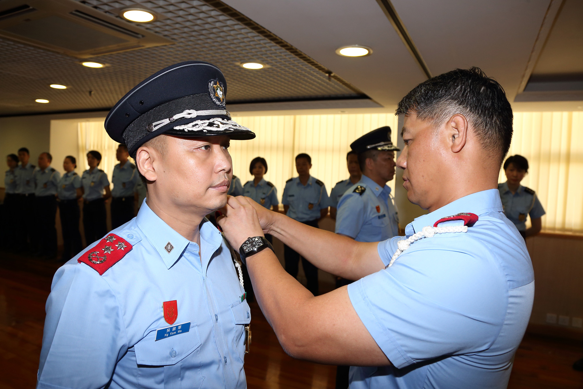 Os 2.os Comandantes Ng Kam Wa e Chan Man Tak têm ambos ricos conhecimentos profissionais, boas aptidões, elevada capacidade de liderança e excelente desempenho de funções, e foram, ainda, promovidos e louvados por várias vezes.
