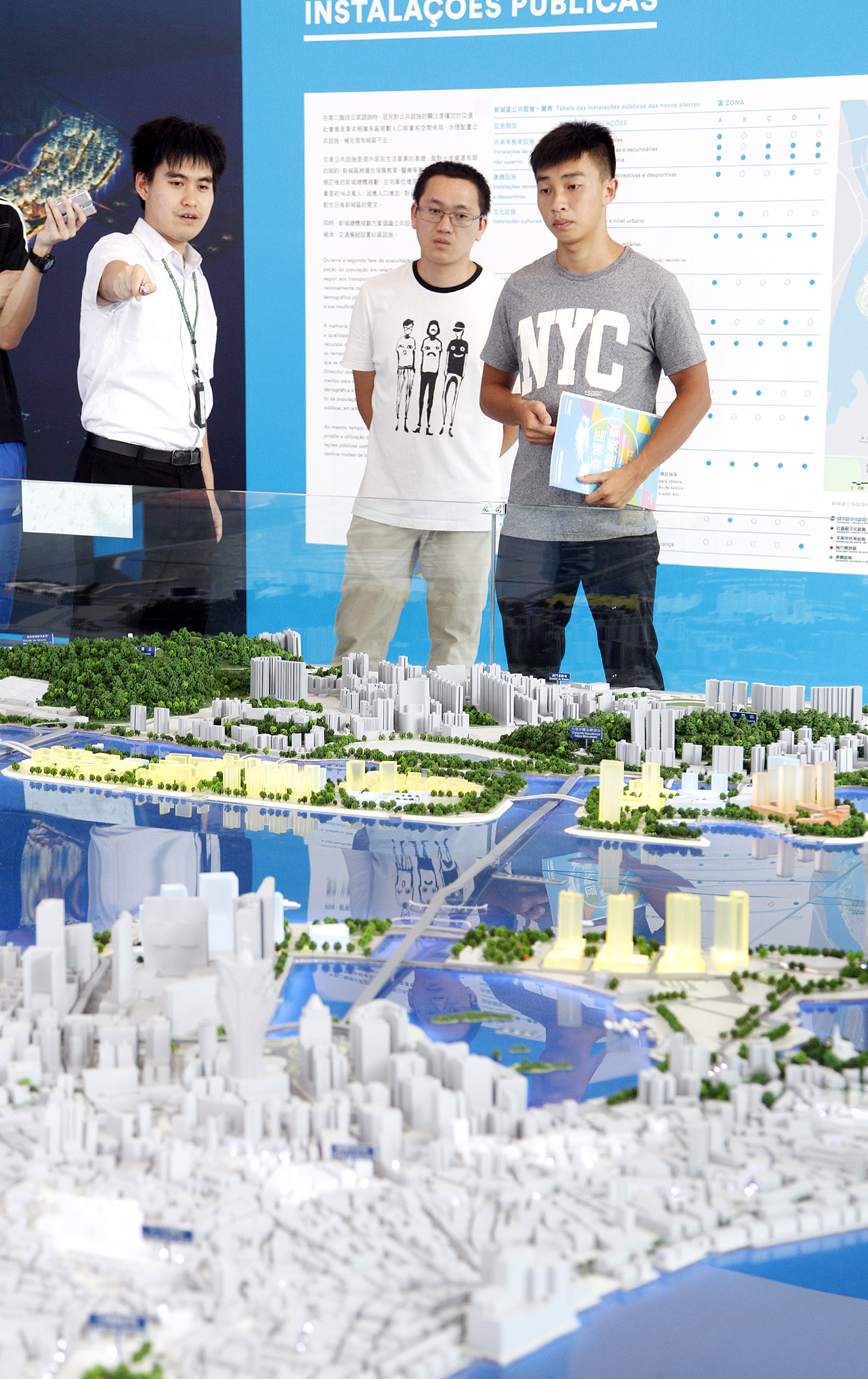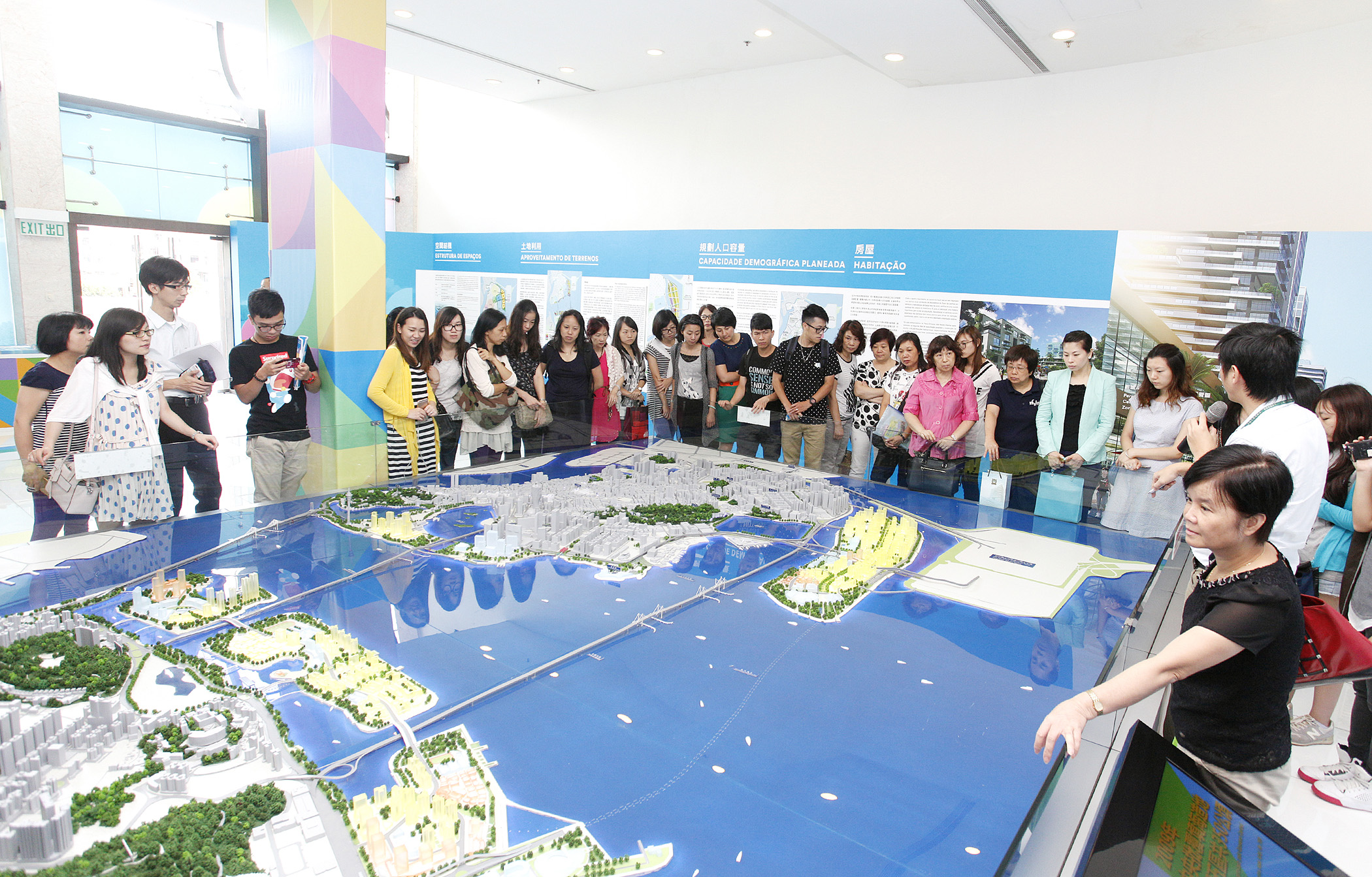 Os representantes da União Geral das Associações dos Moradores de Macau e da Associação Geral de Estudantes Chong Wa de Macau visitaram ultimamente a exposição do plano director dos novos aterro para um melhor conhecimento do seu conteúdo e trocaram interactivamente impressões sobre a matéria com os urbanistas e arquitectos da DSSOPT.