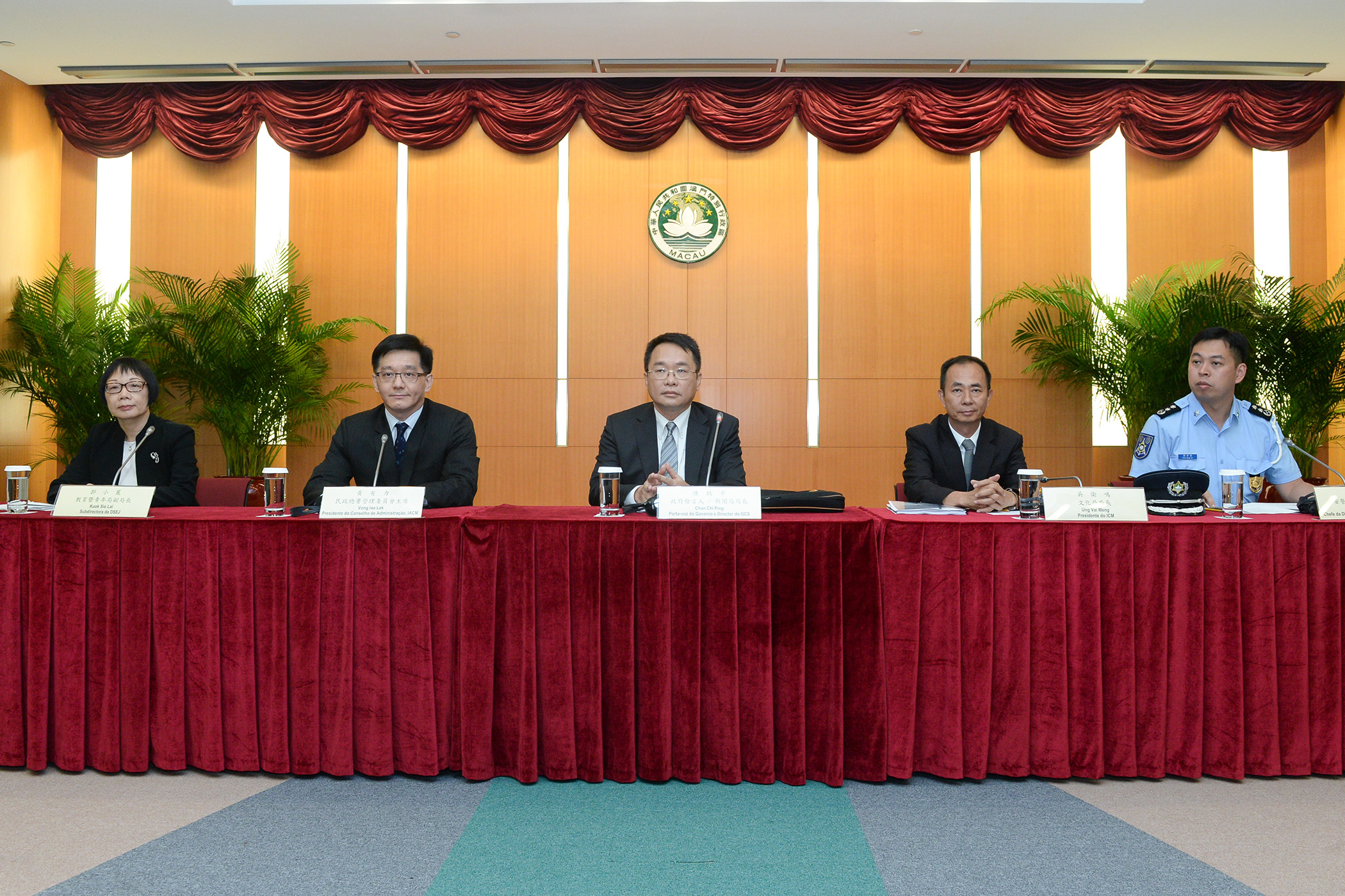 O Gabinete do Porta-Voz do Governo da RAEM realizou, hoje (dia 28 de Agosto), na sede do Governo, uma conferência de imprensa para apresentar as actividades comemorativas no âmbito do 70.º Aniversário da Vitória da Guerra de Resistência do Povo Chinês contra a Agressão Japonesa, que foi presidida pelo porta-voz do Governo, Victor Chan, presidente do Conselho de Administração do Instituto para os Assuntos Cívicos e Municipais, Vong Iao Lek, presidente do Instituto Cultural, Ung Vai Meng, subdirectora da Direcção dos Serviços de Educação e Juventude, Kuok Sio Lai e chefe da Divisão de Relações Públicas do Corpo de Polícia de Segurança Pública, Chio Song Un.