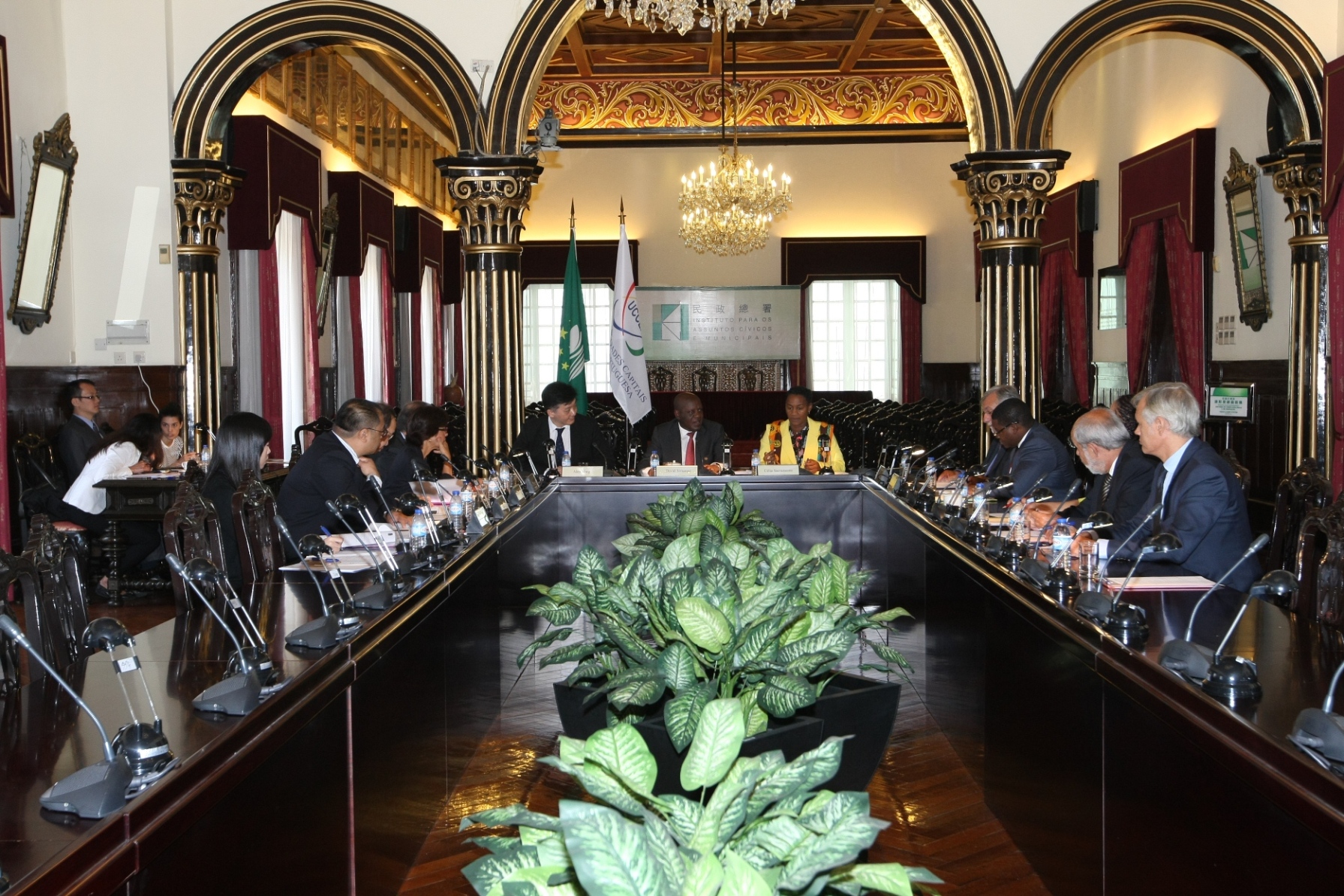 Decorreu esta manhã, dia 14 de Setembro, no Salão Nobre do Instituto para os Assuntos Cívicos e Municipais (IACM), a reunião da Comissão Executiva da UCCLA – União das Cidades Capitais de Língua Portuguesa. Contou com a presença do Presidente da Comissão Executiva, representante da cidade de Maputo, David Simango, dos Vice-Presidentes da Comissão Executiva, representantes das cidades de Macau e Salvador da Bahia, Vong Iao Lek e Célia Sacramento, respectivamente; do Secretário-geral da UCCLA, Vítor Ramalho, do Presidente do Conselho Consultivo Empresarial, Pedro Palhinha, da Chefe Substituta da Delegação Económica e Comercial de Macau, Gabriela César, e do Vice-Presidente do IACM, Lo Veng Tak, entre outros membros da associação.