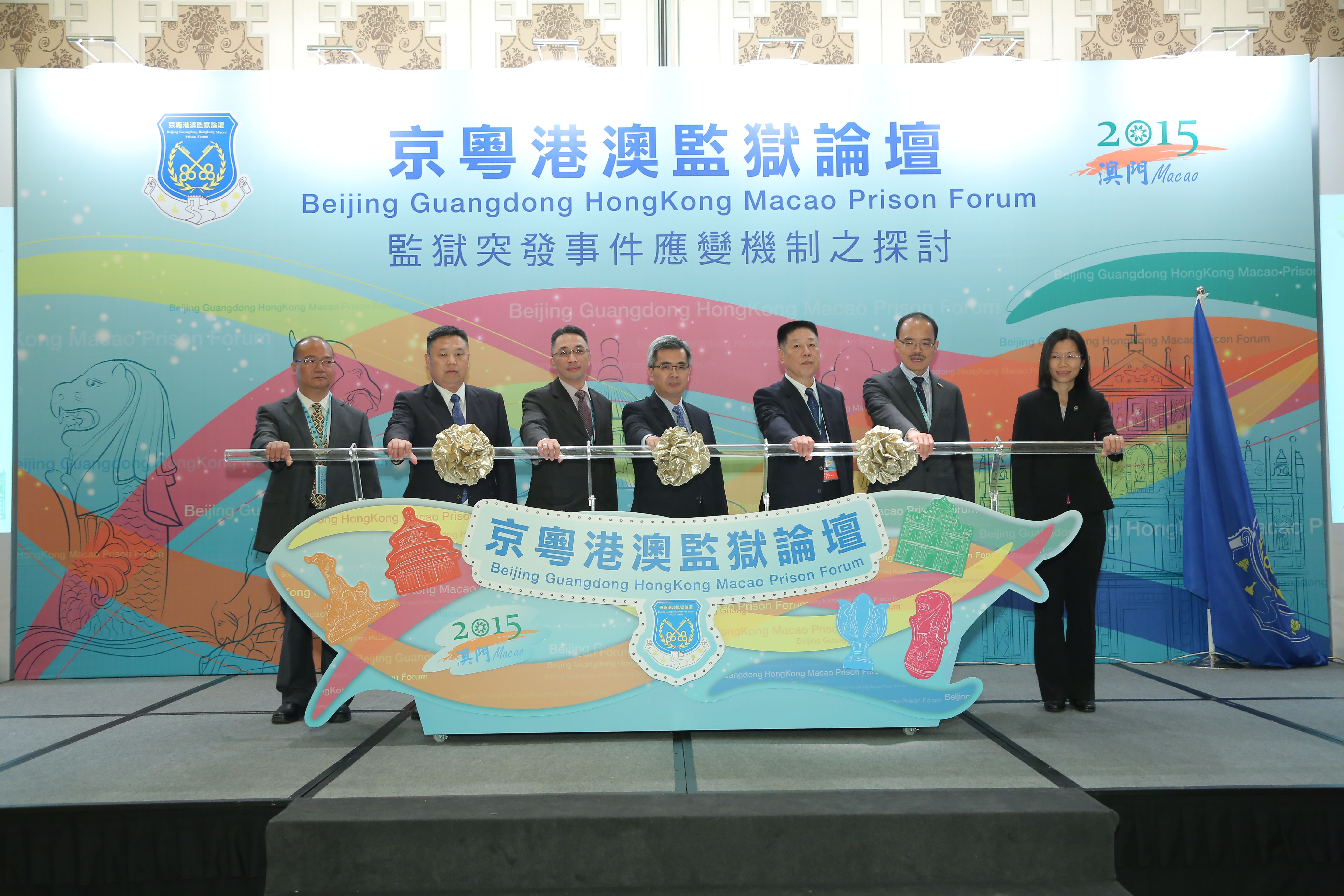 A cerimónia de inauguração do “Fórum Prisional de Pequim, Guangdong, Hong Kong e Macau 2015”, teve lugar na manhã do dia 14, e foi presidida pelo Secretário para a Segurança – Wong Sio Chak, Director dos Serviços Prisionais de Pequim – Lin Zhaobo, Vice-Ministro dos Serviços de Ligação para os Assuntos Policiais do Gabinete de Ligação do Governo Popular Central na RAEM – Song Dongxiang, Director dos Serviços Correccionais da RAEHK – Comissário Yau Chi Chiu, Subdirector dos Serviços Prisionais da Província de Guangdong – Chen Dachao, Chefe do Pessoal dos Serviços Prisionais da Singapura – Shie Yong Lee e Director do Estabelecimento Prisional de Macau – Lee Kam Cheong.