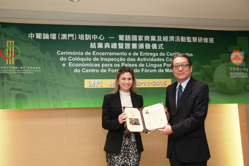 Realiza-se no dia 20 de Novembro de 2015, na parte da manhã, no Secretariado Permanente do Fórum de Macau, a "Cerimónia de Encerramento do Colóquio de Inspecção das Actividades Comerciais e Económicas para os Países de Língua Portuguesa" do Centro de Formação do Fórum de Macau, ministrado pela Universidade de São José. A cerimónia de encerramento contará com a presença do Secretário-Geral do Secretariado Permanente do Fórum de Macau, Dr. Chang Hexi, da representante da Delegação Comercial do Departamento dos Assuntos Económicos do Gabinete de Ligação do Governo Central da República Popular da China na RAEM, da Cônsul-Geral da República de Angola na RAEM, Dra. Sofia Pegado da Silva, do Cônsul-Geral da República de Moçambique na RAEM, Dr. Rafael Custodio Marques, do Cônsul Honorário da Guiné-Bissau em Macau, Dr. John Lo, do Secretário-Geral Adjunto (indicado pelos Países de Língua Portuguesa) do Secretariado Permanente do Fórum de Macau, Dr. Vicente de Jesus Manuel, da Coordenadora do Gabinete de Apoio ao Secretariado Permanente do Fórum de Macau, Dra. Cristina Morais, do Reitor da Universidade de São José, Prof. Doutor Peter Stilwell, da Coordenadora do Gabinete de Administração do Secretariado Permanente do Fórum de Macau, Dra. Zhang Jie e do Coordenador do Gabinete de Ligação e Delegado de Cabo Verde, Dr. Mário Vicente e Delegados dos Países de Língua Portuguesa junto do Fórum de Macau. O Secretário-Geral Adjunto do Fórum de Macau, Dr. Vicente de Jesus Manuel, o Reitor da Universidade de São José, Prof. Peter Stilwell, bem como o Chefe rotativo do Colóquio, Dr. Francisco José Julião Chacha, irão proferir um discurso na cerimónia de encerramento.