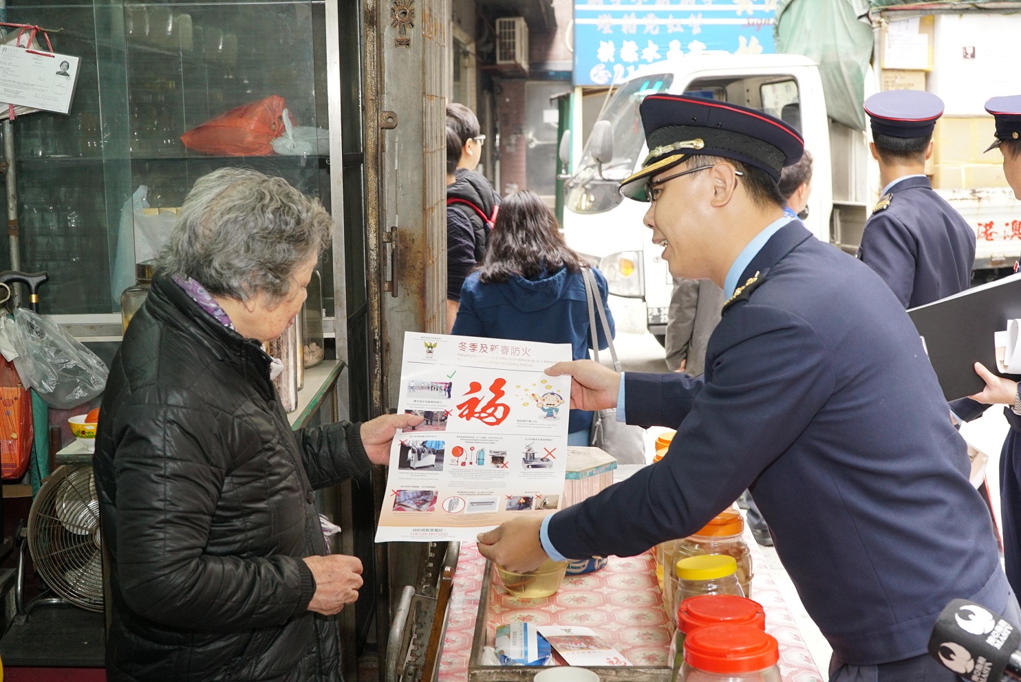 De acordo com o plano definido, o Corpo de Bombeiros (CB) lançou, durante o mês de Dezembro, acções de sensibilização sobre a prevenção contra incêndios no Inverno, para além de enviar pessoal para visitas, realização de colóquios e palestras e distribuição dos artigos promocionais junto das associações e cidadãos nas zonas com maior densidade populacional, tais como Taipa, Zona Norte e Central, publicou anúncios nos reclames luminosos e nos autocarros e fez publicidade na rádio. Com a aproximação do Ano Novo Chinês, as acções de sensibilização irão ser realizadas continuamente, a fim de alertar os cidadãos para adoptarem medidas contra incêndios nas suas residências nesse período.