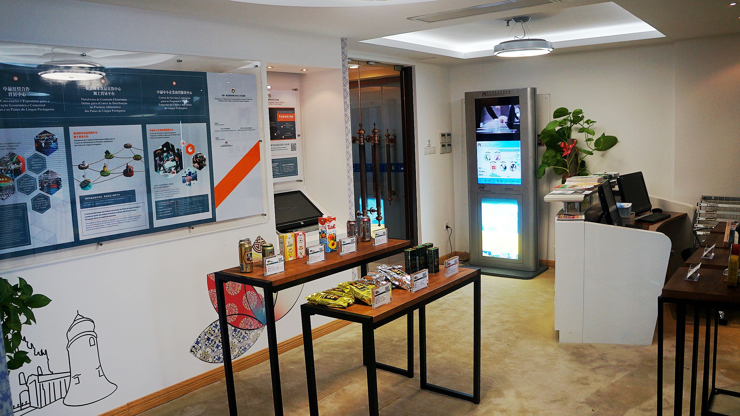 A “Zona de Exposição de Produtos Alimentares dos Países de Língua Portuguesa” está localizada na Sala No.1805, Fujian International Youth Communication, No.83 Center, Dongjie Street nas instalações do Gabinete de Ligação do IPIM em Fuzhou. Estão patentes no recinto na fase inicial, mais de 20 produtos alimentares dos países lusófonos, incluindo, nomeadamente, vinho, café, enlatados e azeite, actualizando-se mensalmente os produtos expostos. Além disso, na referida zona de exposição encontra-se ainda disponível parede de exposição multimédia e de imagens, textos, apresentando os produtos alimentares dos países lusófonos. Os empresários podem utilizar o computador da tela do toque para visitar o “Portal para a Cooperação na Área Económica, Comercial e de Recursos Humanos entre a China e os Países de Língua Portuguesa”, com acesso a mais informações sobre os “Três Centros” de Macau (Centro de Serviços Comerciais para as PME´s da China e dos Países de Língua Portuguesa, Centro de Distribuição dos Produtos Alimentares dos Países de Língua Portuguesa e Centro de Convenções e Exposições para a Cooperação Económica e Comercial entre a China e os Países de Língua Portuguesa).