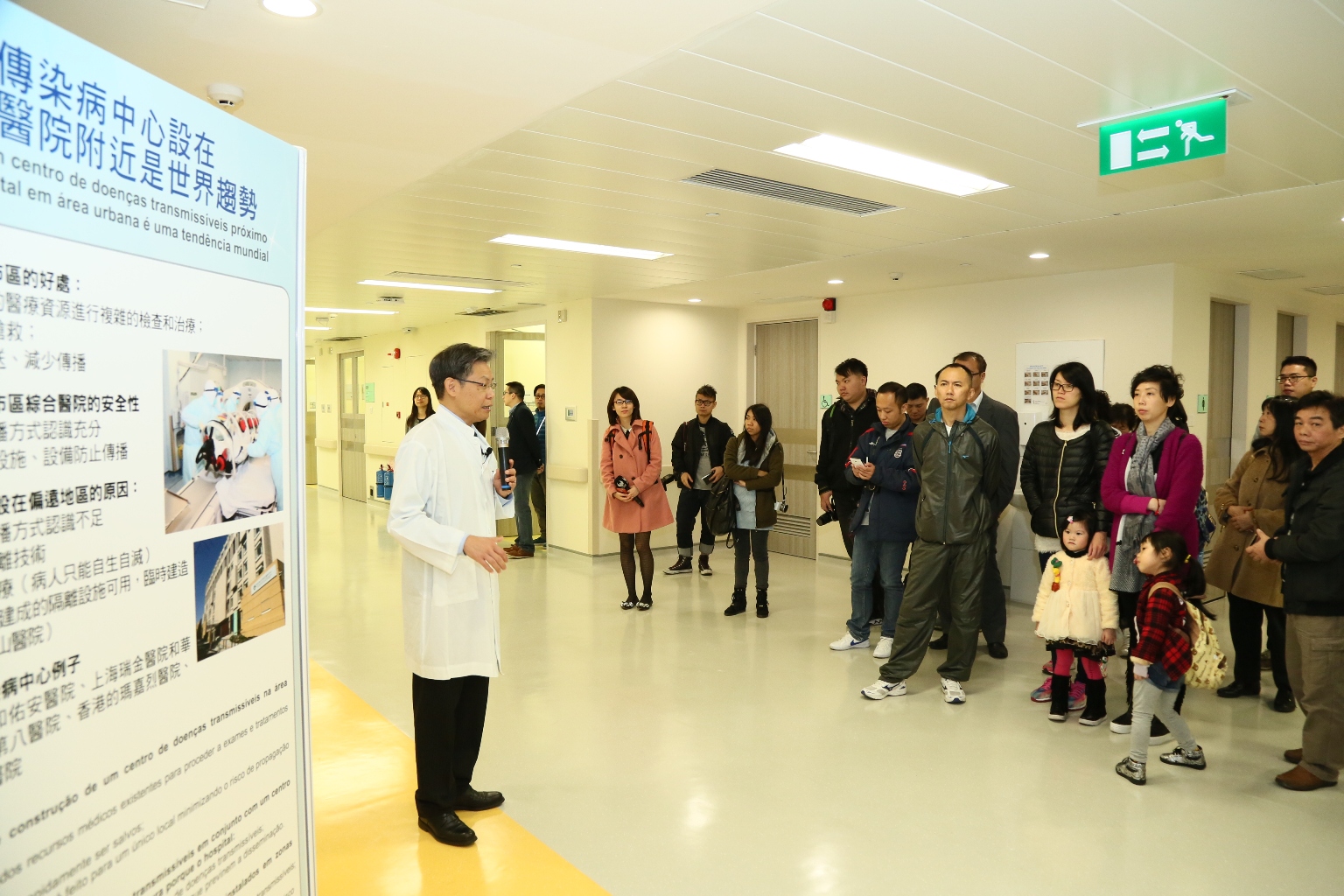 O Secretário Dr. Alexis Tam, explicou aos visitantes os motivos e a importância de construção de um edifício de doenças transmissíveis sendo considerado como uma medida preventiva, esperando que os residentes possam compreender e apoiar a posição do Governo já que é dada grande á importância da saúde de profissionais de saúde, cidadãos e viajantes, bem como esperando que através desta actividade, os cidadãos possam mais conhecer o trabalho de prevenção e controlo de doenças transmissíveis e dissipar as dúvidas existentes.
