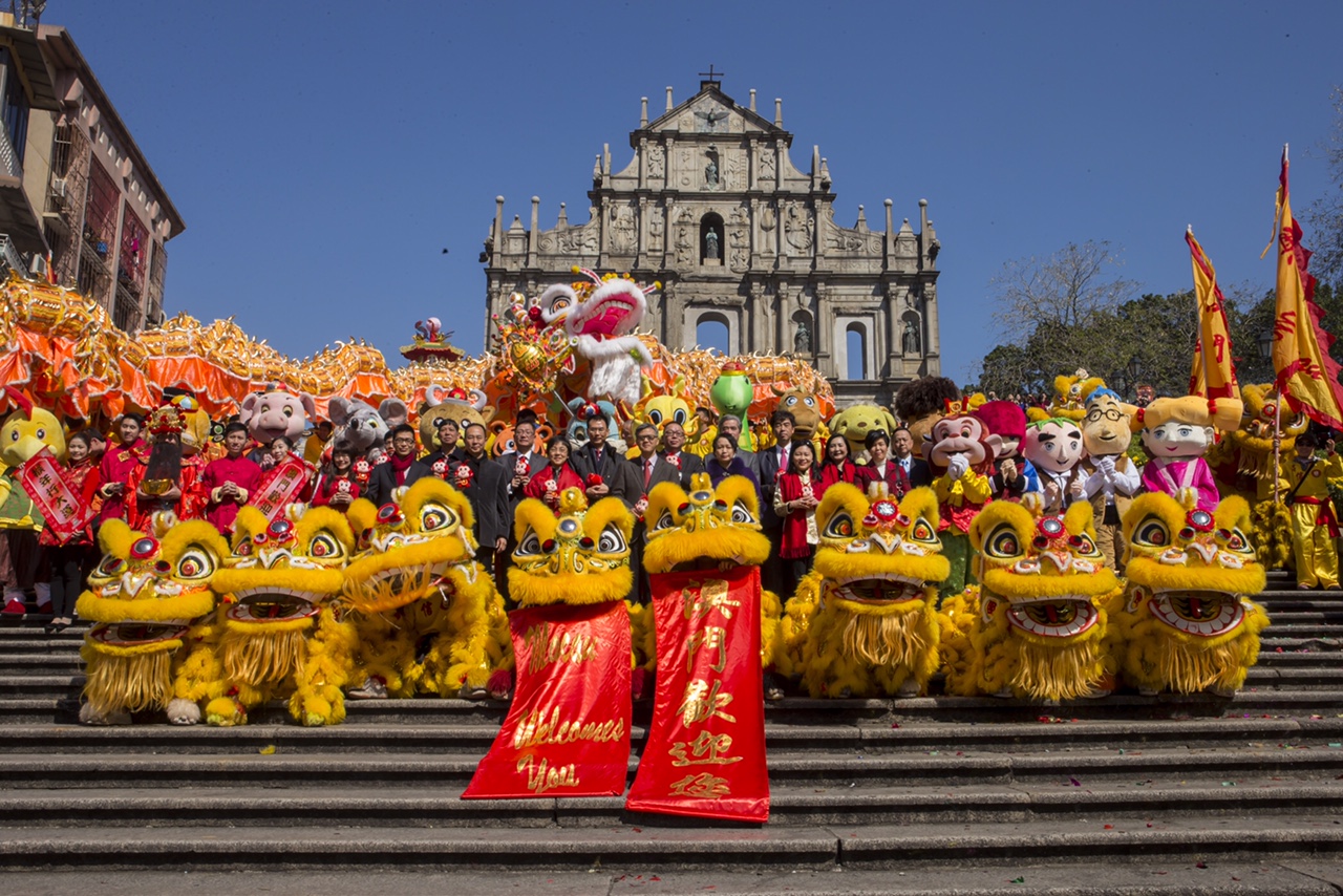 O chefe do Gabinete do SASC, Ip Peng Kin, a directora da DST, Maria Helena de Senna Fernandes, o presidente do IC, Ung Vai Meng, a membro do Conselho de Administração do IACM, Isabel Celeste Jorge, os subdirectores da DST, Cecilia Tse e Cheng Wai Tong, a par com representantes da indústria turística, entre outros convidados, na manhã do primeiro dia do Ano, segundo o calendário lunar chinês, presidiram à cerimónia de vivificação do dragão gigante dourado e leões, no largo das Ruínas de S. Paulo, à qual se seguiu uma queima de panchões, no Largo do Senado. Os convidados, em conjunto com o Deus da Fortuna, distribuíram, em seguida, “lai-sis” e lembranças pelos residentes e visitantes no Largo do Senado, em ambiente de grande animação, sobretudo na altura de receber “lai-sis” das mãos do Deus da Fortuna, como sinal de boa sorte, fazendo votos de prosperidade e abundância para Macau.