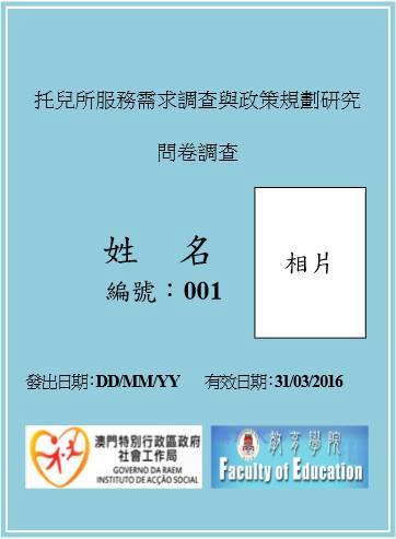 A Faculdade de Educação da Universidade de Macau, responsável pela concepção e execução do presente estudo, irá realizar o inquérito por questionário, no domicílio das famílias seleccionadas, no período compreendido entre as 18 e as 21 horas dos dias 22 de Fevereiro a 31 de Março de 2016, podendo ainda, se necessário, alargar-se a realização do mesmo durante o período diurno. O inquérito em causa destina-se aos encarregados de educação dos bebés e crianças com idade igual ou inferior a 6 anos e abrange matérias que incluem os dados básicos de background, a situação dos cuidados prestados a bebés e crianças, os motivos da utilização dos serviços das creches e as respectivas expectativas, bem como, as opiniões sobre o futuro desenvolvimento dos mesmos serviços em Macau. A selecção das famílias a inquirir será feita com recurso ao processo de amostragem amostra aleatória estratificada. Durante a segunda quinzena de Fevereiro, todas as famílias seleccionadas irão receber as cartas de notificação emitidas pela Faculdade de Educação da Universidade de Macau. Na realização das visitas, os respectivos agentes do inquérito estarão identificados através do cartão de identificação e do vestuário. Os agentes do inquérito, depois de conferirem os dados relativos à morada e de efectuada a entrevista de acordo com o conteúdo do questionário, munidos do mesmo, abandonam a casa dos entrevistados.