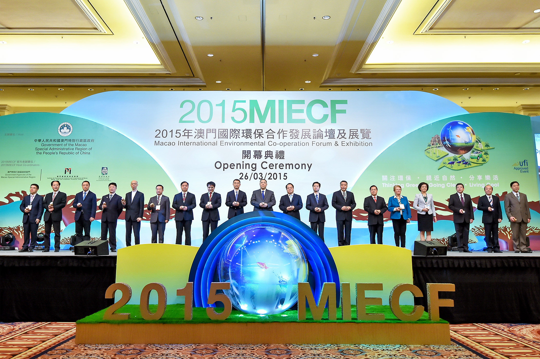 O Fórum e Exposição Internacional de Cooperação Ambiental de Macau (MIECF) vai a caminho da sua 9.ª edição, desde que arrancou no ano de 2008. Este evento anual é um marco importante no calendário do sector ambiental, aumentando de forma persistente os padrões de qualidade e promovendo a partilha e a cooperação entre parceiros de negócio. Em 2011, o MIECF foi reconhecido pela UFI - Associação Global da Indústria de Exposições, ao tornar-se numa importante plataforma verde de oportunidades inovadoras no sector ambiental e de divulgação de conceitos ambientais. A Mostra Verde do MIECF 2015 abrangeu uma área de cerca de 16.900 metros quadrados e atraiu mais de 9.600 visitantes ao longo de três dias. No que respeita ao Fórum Verde, o programa de 2015 incluiu seis sessões do fórum e um seminário, a que assistiram, no total, mais de 3.600 pessoas de nove países e regiões e envolveu a participação de mais de 50 oradores, na qualidade de pioneiros ambientais, líderes de multinacionais ambientais e decisores políticos regionais.