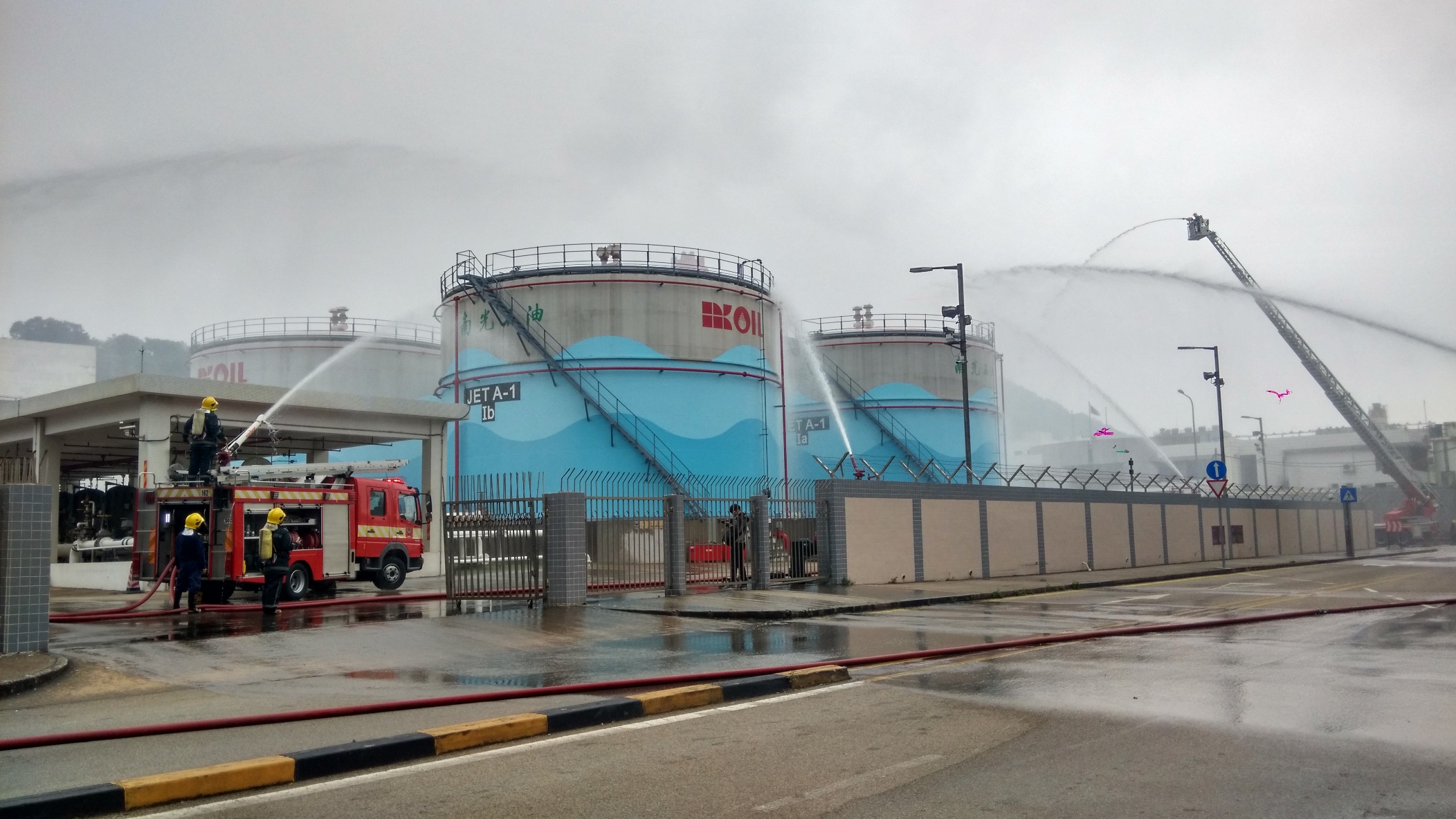 O exercício “Fire in the Fuel Farm” decorreu entre as 1430 e as 1530. O cenário criado envolveu a deflagração de um incêndio num dos tanques de combustível devido a electricidade estática. A Nam Kwong Petroleum & Chemicals Co. Ltd., empresa fornecedora dos combustíveis, imediatamente activou os sistemas de segurança operacional de acordo com o plano interno de emergência, incluindo a evacuação das viaturas estacionadas nas instalações. As entidades envolvidas neste tipo de ocorrência foram imediatamente alertadas de acordo com o Plano de Emergência do Aeroporto. Os meios de combate a incêndios do aeroporto acorreram ao local e, embora não se tivessem registado vítimas, os meios adicionais do Corpo de Bombeiros foram solicitados a intervir. Os trabalhadores das instalações aeroportuárias localizadas nas imediações foram evacuados, considerando o elevado risco de extensão da área abrangida pelo incidente.