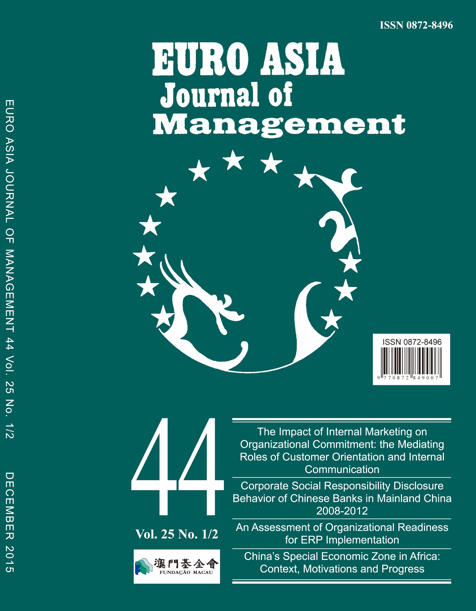 A presente edição reúne quatro textos que apresentam um grande valor acrescentado em termos académicos nas seguintes áreas: “influência do comércio interno sobre o compromisso das organizações”; “divulgação de informações sobre a responsabilidade social das instituições bancárias do Interior da China”; “execução do planeamento dos recursos empresariais” e “cooperação comercial entre a China e África”. Os textos são os seguintes: “The Impact of Internal Marketing on Organizational Commitment: the Mediating Roles of Customer Orientation and Internal Communication”, de autoria conjunta de Lancy Mac e Ho Kit Ieng Shirley, ambos da Faculdade de Gestão de Empresas da Universidade de Macau; “Corporate Social Responsibility Disclosure Behavior of Chinese Banks in Mainland China 2008 – 2012”, de autoria conjunta de Carlos Noronha e Wong Si Mei, Sammi, ambos da Faculdade de Gestão de Empresas da Universidade de Macau; “An Assessment of Organizational Readiness for ERP Implementation”, de autoria conjunta de Waddah Alhakimi e Ammar Alzahary, ambos da “Arab Academy for Banking & Financial Science” e “China’s Special Economic Zone in Africa: Context, Motivations and Progress”, de autoria de Nelson Santos António e ShaoZhuang Ma, ambos do ISCTE-Instituto Universitário de Lisboa, Portugal.