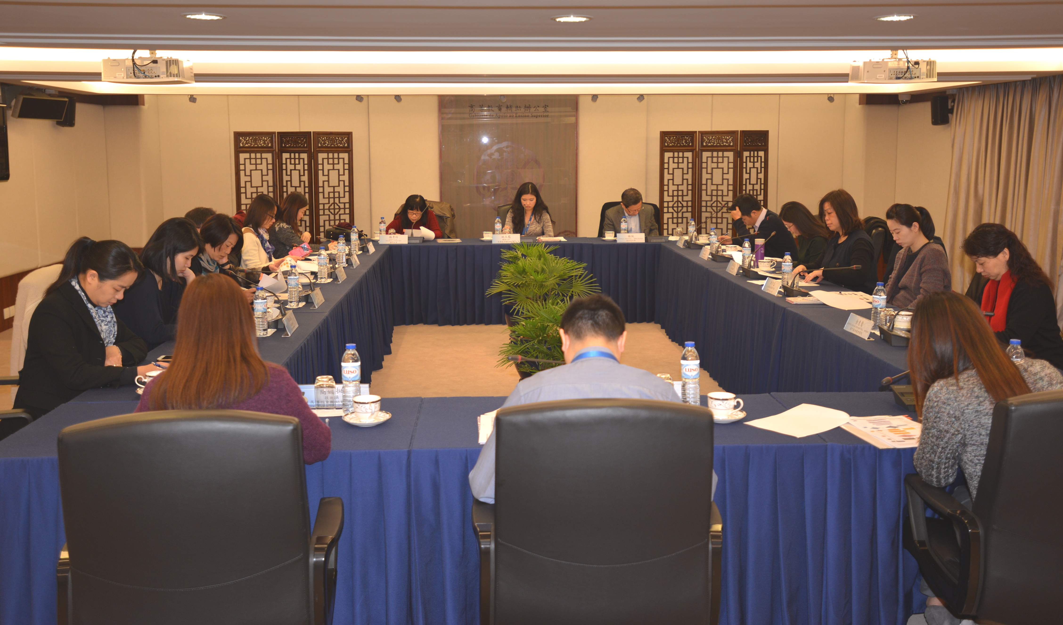 Estiveram presentes nessa reunião os representantes das instituições: Sylvia S. L. Ieong, directora do Gabinete do Reitor, da Universidade de Macau; Lei Un, Linda, chefe da Divisão de Assuntos de Estudantes, do Instituto Politécnico de Macau; Leong Kin Wa, técnico superior, do Instituto de Formação Turística; Tai Sao Cheng, comissária, da Escola Superior das Forças de Segurança de Macau; Flora Kok, chefe da Divisão de Pessoal, da Universidade de Ciência e Tecnologia de Macau; Chu Tak Lam, coordenador administrativo superior da Divisão de Recursos Humanos, da Universidade da Cidade de Macau; Vincent Yang, assistente do reitor (áreas dos assuntos académicos e desenvolvimento), da Universidade de São José; U Wai Ang, professora assistente, do Instituto de Enfermagem Kiang Wu de Macau; Lio Sok Wa, coordenadora, do Instituto de Gestão de Macau; Nana Wong, coordenadora-adjunta da Divisão de Assuntos Pedagógicos, do Instituto Milénio de Macau; e Io Iok Fong, chefia funcional, do Gabinete de Apoio ao Ensino Superior.
