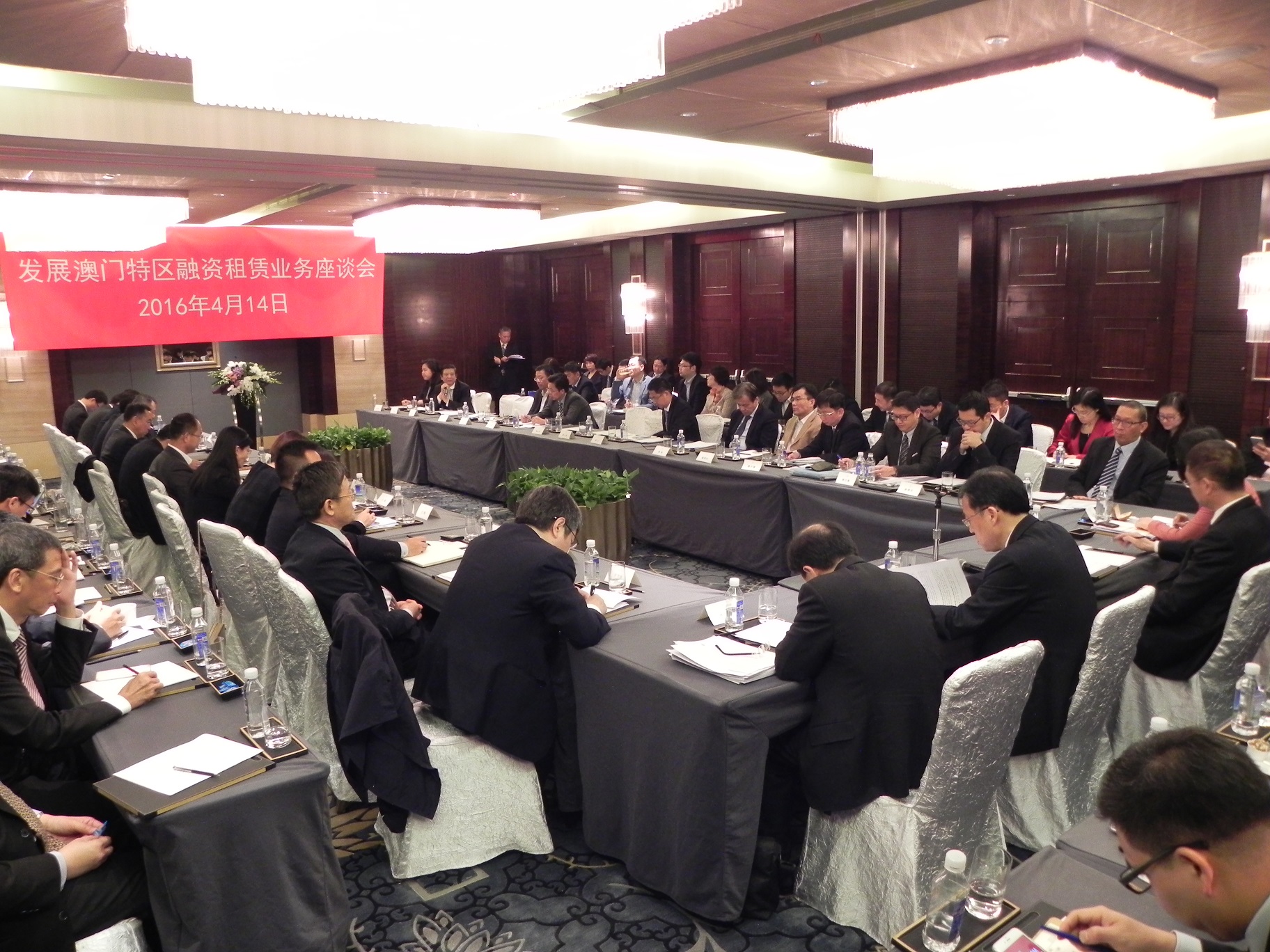 Para prosseguir a finalidade de implementar as linhas de acção governativa do Governo da RAEM, relativamente ao desenvolvimento das finanças com características próprias e ao estímulo de actividades de locação financeira de Macau e, com a assistência prestada pelo Gabinete de Ligação do Governo Popular Central na RAEM (Gabinete de Ligação) e o apoio do membro presidente da Associação de Bancos de Macau (isto é, o Banco da China, Sucursal de Macau), a Autoridade Monetária de Macau (AMCM) realizou, em 14 de Abril de 2016, em Pequim, uma acção denominada “Palestra sobre o desenvolvimento na RAEM, de actividades de locação financeira”, tendo contado com a participação dos seguintes representantes: Subdirector do Gabinete de Ligação, Dr. Yao Jian, “Deputy Director” do “International Department” da “China Banking Regulatory Commission (CBRC)”, Dr. Fang Liming e representantes da Direcção dos Serviços de Finanças e do Instituto de Promoção do Comércio e do Investimento de Macau. Por outro lado, marcaram ainda presença na referida palestra convidados do Banco de Desenvolvimento da China, da “Leasing Business Committee of China Association of Enterprises with Foreign Investment”, da Associação de Bancos de Macau, da Associação das Seguradoras de Macau e das principais empresas de actividades de locação financeira do Continente e de Macau.
