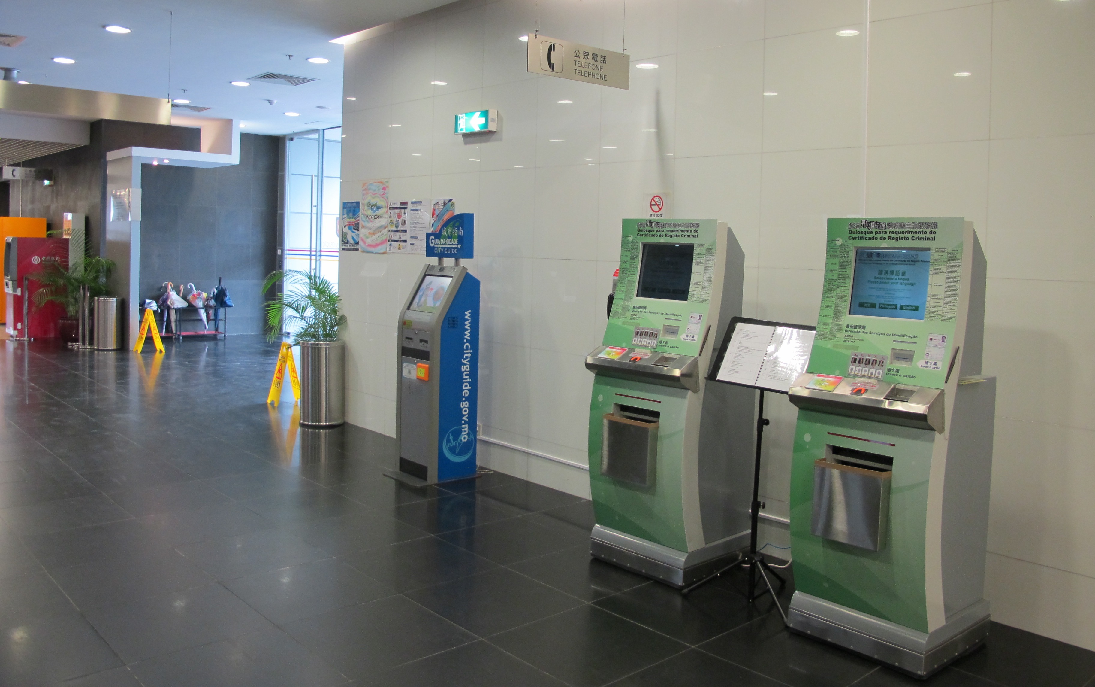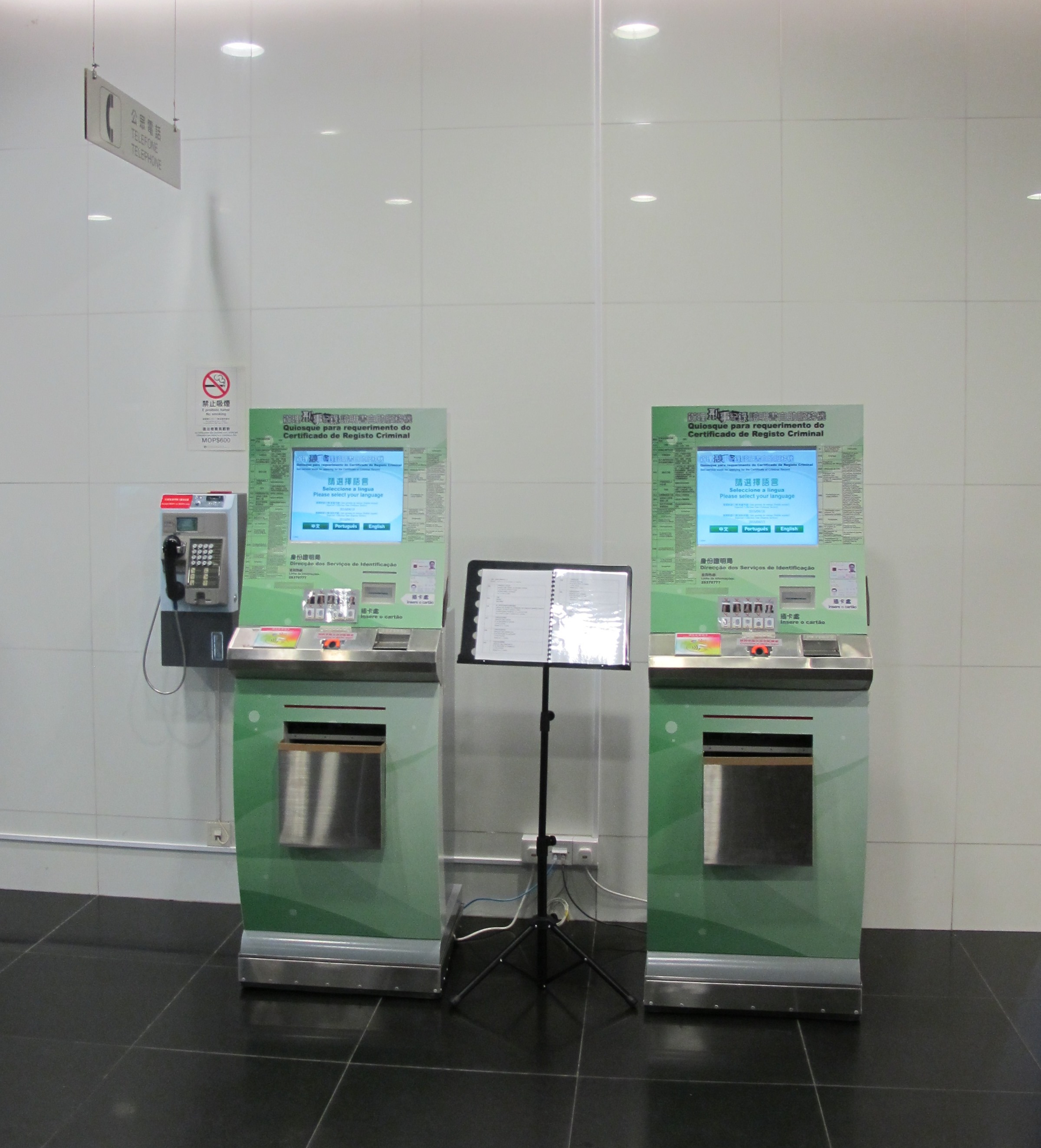 Depois do lançamento dos quiosques de multi-aplicação para o requerimento da Certidão Individual de Movimentos Fronteiriços, em Setembro de 2015, e da possibilidade de requerer, de imediato, o Bilhete de Identidade da RAEM no Centro de Serviços da RAEM (na área dos assuntos de identificação), logo após o levantamento da Guia de Renovação da Autorização de Residência ou do Certificado da Autorização de Residência no mesmo Centro de Serviços desde Novembro de 2015, e para desenvolver ainda mais este canal e implementar o espírito de oferecer serviços inter-departamentais, no âmbito de requisição de documentos e elevar o nível de qualidade destes serviços “one stop”, podem-se encontrar no Edifício do Serviço de Migração, Pac on, Taipa, quiosques de auto-atendimento para requerimento do Certificado do Registo Criminal, mercê de uma vez mais a cooperação conjunta entre o CPSP, a DSFSM e a DSI, procurando com isso facilitar os cidadãos, sobretudo os requerentes da renovação da Autorização de Residência, no requererimento do Certificado de Registo Criminal. Se escolher o serviço de remessa do Certificado de Registo Criminal da DSI, o Certificado requerido será enviado directamente ao CPSP, sem a necessidade de o requerente deslocar-se à DSI para o levantar. A respectiva medida facilita não só os cidadão das Ilhas que desejam requerer o Certificado de Registo Criminal, mas também os indivíduos que precisam de tratar das formalidades de renovação da Autorização de Residência no mesmo local, reduzindo assim deslocações a vários serviços públicos.
