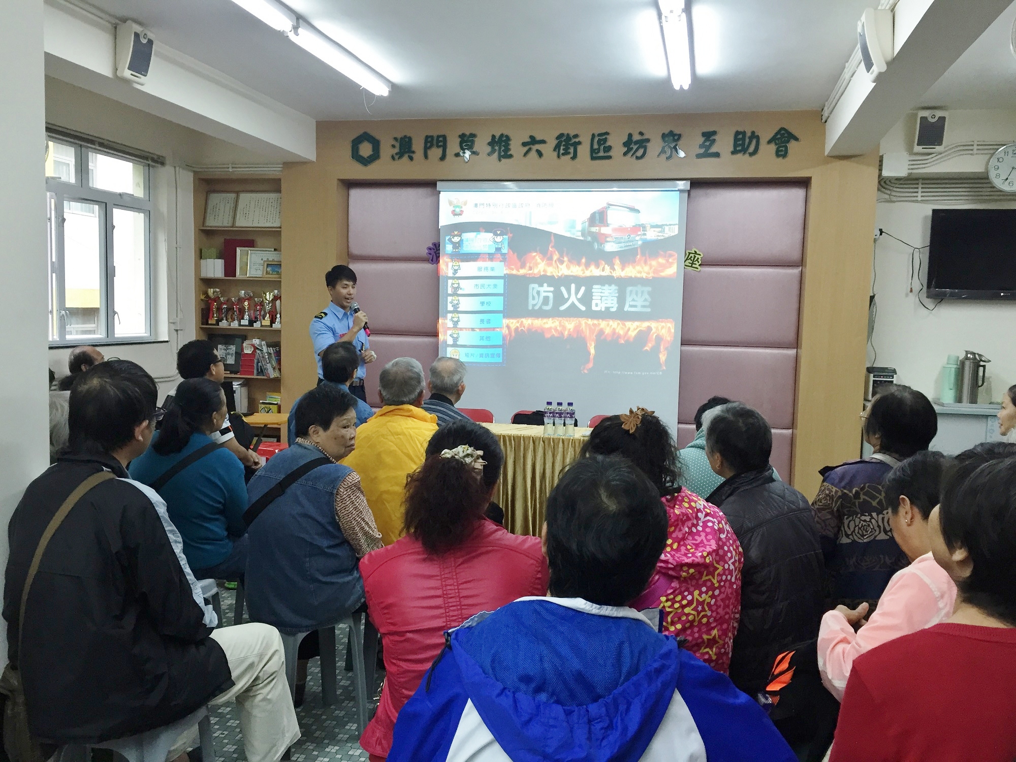 O Corpo de Bombeiros tem vindo a apostar no conceito de prevenção, promovendo a segurança contra incêndios junto da comunidade, a fim de minimizar as oportunidades de ocorrência de incêndios. Hoje (dia 19 de Abril), os oficiais desta Corporação visitaram a Associação de Beneficência e Assistência Mútua dos Moradores das 6 Ruas Chou Toi para ouvir opiniões sobre as nossas tarefas de prevenção e combate a incêndios e de salvamento, bem como melhorar os nossos trabalhos após proceder à análise das opiniões recolhidas, no sentido de servir melhor os cidadãos. O encontro incluiu ainda uma palestra sobre a prevenção contra incêndios destinada aos 50 membros da Associação e moradores da zona, na qual foram dadas as informações sobre as medidas de prevenção contra o fogo no dia-a-dia e o processo de evacuação de emergência em caso de incêndio. Após a palestra, foi feita a distribuição de panfletos e colocação de cartazes na zona com os membros e voluntários da Associação, de modo a elevar a consciência de prevenção contra incêndios dos moradores. As respectivas acções de divulgação irão ser realizadas de forma contínua no futuro.