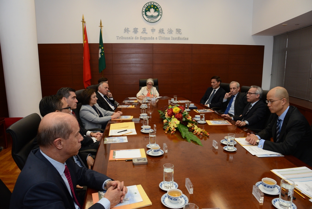 No dia 19 de Abril, à tarde, uma Delegação composta pelo Director do Departamento Central de Investigação e Acção Penal e Procurador-Geral-Adjunto, Dr. Amadeu Francisco Ribeiro Guerra, pelo Membro Permanente do Conselho Superior do Ministério Público e Procurador-Adjunto, Dr. Jorge Manuel Alves de Oliveira, pela Chefe do Gabinete da Procuradora-Geral da República e Procuradora da República, Dr.ª Helena de Jesus Fernandes Gonçalves, e pelo Assessor do Gabinete da Procuradora-Geral da República e Procurador da República, Dr. Rui Manuel de Jesus Batista, bem como chefiada pela Procuradora-Geral da República Portuguesa, Dr.ª Joana Marques Vidal, realizou uma visita aos Tribunais de Segunda e de Última Instâncias da R.A.E.M., em companhia do Cônsul-Geral de Portugal em Macau e Hong Kong, Dr. Vítor Sereno, do Procurador-Adjunto do Ministério Público da R.A.E.M., Dr. Chan Tsz King, e do Delegado do Procurador do Ministério Público da R.A.E.M., Dr. Joaquim Teixeira de Sousa. O Presidente do Tribunal de Última Instância, Dr. Sam Hou Fai, o Juiz do Tribunal de Última Instância, Dr. Viriato Manuel Pinheiro de Lima, o Presidente do Tribunal de Segunda Instância, Dr. Lai Kin Hong, o Juiz do Tribunal de Segunda Instância, Dr. Choi Mou Pan, e a Chefe do Gabinete do Presidente do Tribunal de Última Instância, substituta, Dr.ª Chan Iok Lin, tiveram um encontro com os visitantes.
