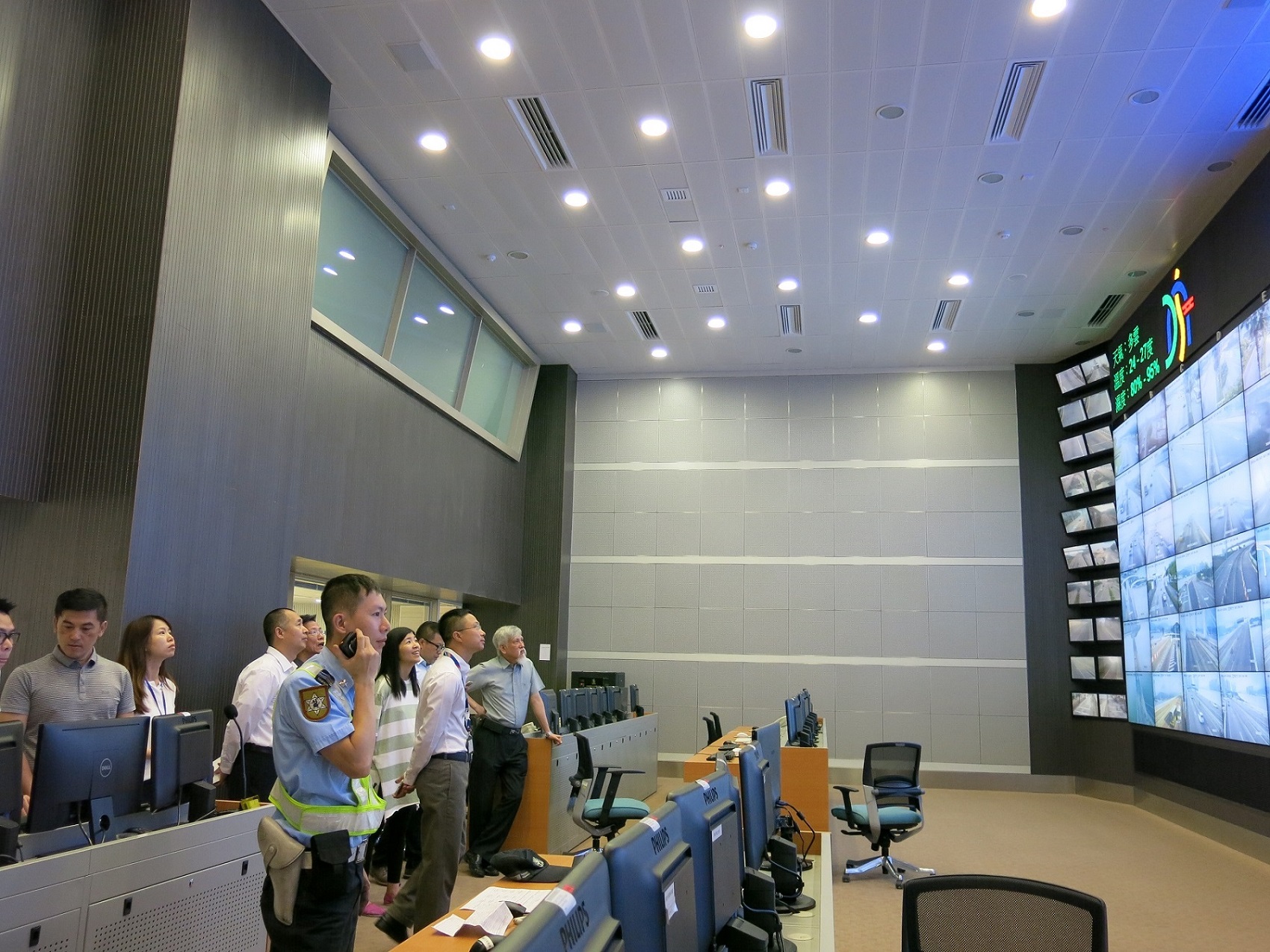 Trabalhadores da DSAT, do Corpo de Polícia de Segurança Pública (CPSP) e das operadoras de autocarros observam a execução do corredor in loco e coordenam as disposições. O Sr. Secretário para os Transportes e Obras Públicas, Eng. Raimundo Arrais do Rosário visitou o Centro de Controlo e Informação de Tráfego para tomar conhecimento da situação da execução do corredor, também aproveitou a visita para encorajar o pessoal das entidades envolvidas.