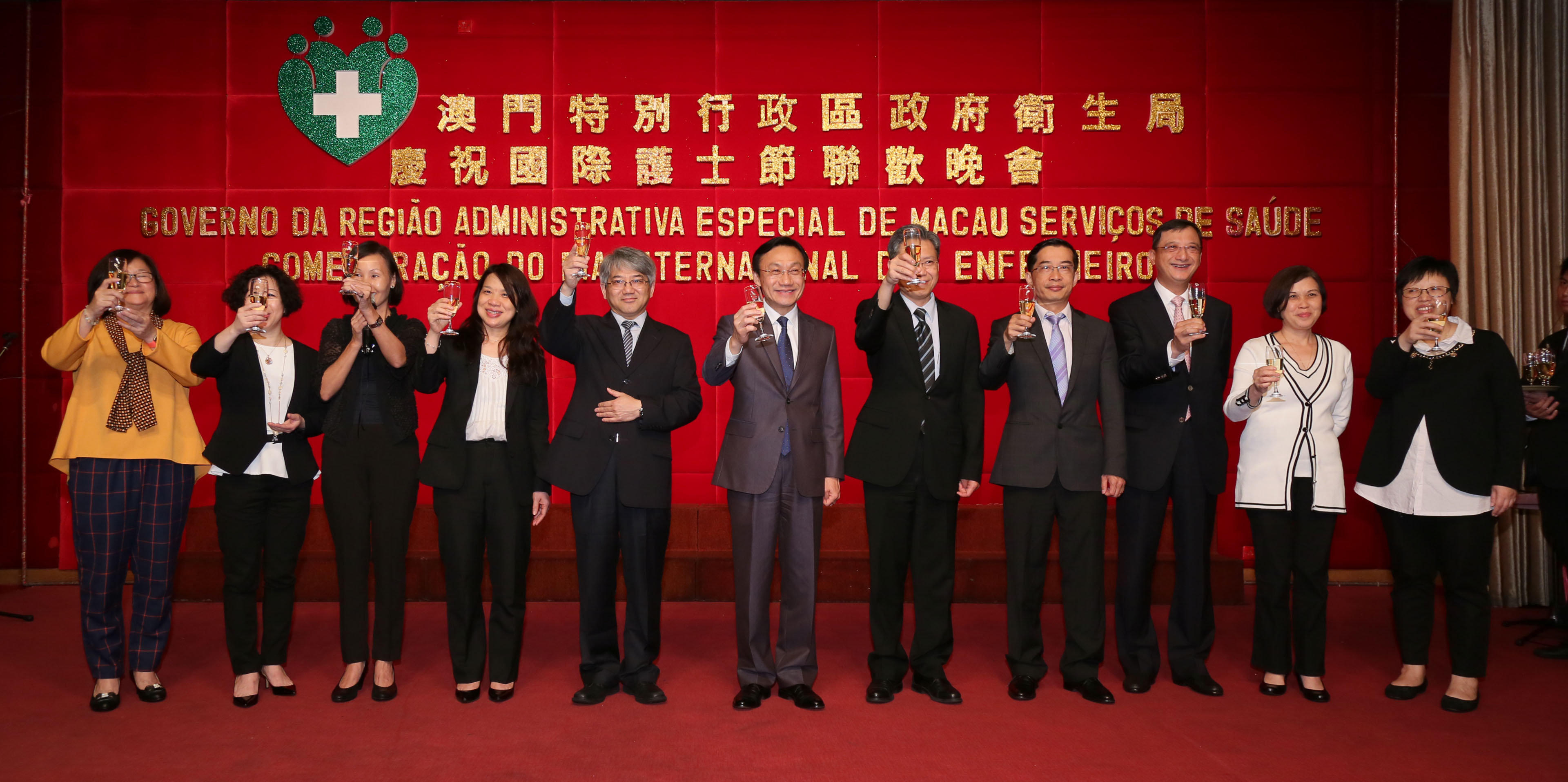 Neste convívio estiveram presentes o Senhor Secretário para os Assuntos Sociais e Cultura, Doutor Alexis Tam, o Chefe do Departamento de Cultura e Educação do Gabinete de Ligação do Governo Central da República Popular da China, Senhora Xu Ting, o Director dos Serviços de Saúde, Dr. Lei Chin Ion, os dois Subdirectores dos Serviços de Saúde, Dr. Kuok Cheong U e Dr. Cheang Seng Ip, e a Subdirectora dos Serviços de Saúde, Dr.a Ho Ioc San. Estiveram também presentes representantes dos Serviços de Saúde, do Hospital Kiang Wu, do Hospital Universitário de Ciências e Tecnologia, do Instituto Politécnico de Macau, do Instituto de Enfermagem Kiang Wu, do Conselho para os Assuntos Médicos, das instituições médicas e das associações de enfermagem.