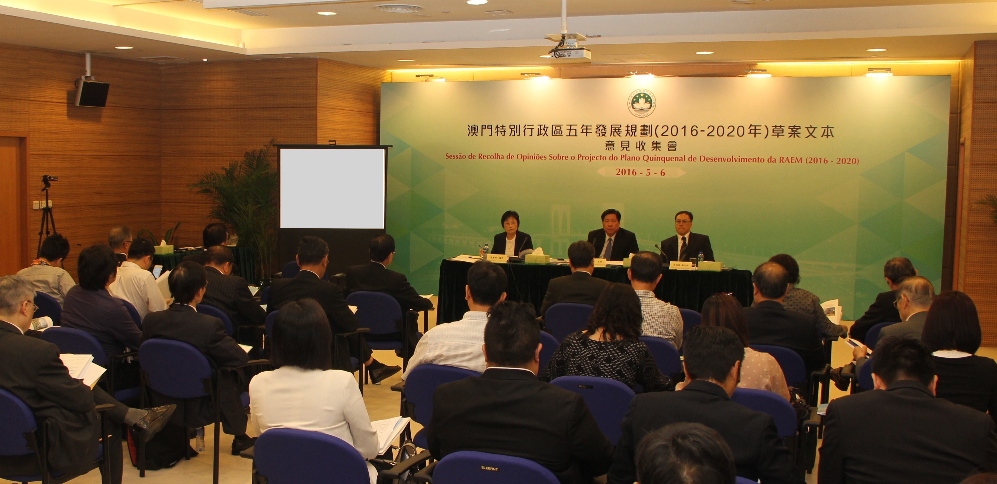 O projecto do Plano Quinquenal de Desenvolvimento da Região Administrativa Especial de Macau (2016-2020) foi já divulgado no passado dia 26 de Abril, tendo assim iniciado os trabalhos da recolha de opiniões, com a duração de 2 meses. O Plano Quinquenal é o plano geral de desenvolvimento da RAEM para os próximos cinco anos e o programa de acção de cooperação entre o Governo e a população. Assim, uma ampla auscultação junto dos diversos sectores da sociedade, unindo a sabedoria da população e reunindo as forças da sociedade, são factores muito importantes para a definição e concretização do Plano Quinquenal. Desta forma, o Gabinete de Estudos das Políticas, responsável pelos trabalhos da presente recolha de opiniões, realizou hoje (dia 6), na sala de reuniões do Gabinete de Estudo das Políticas, a sessão de recolha de opiniões destinada à Associação Comercial de Macau e à Associação Industrial de Macau.