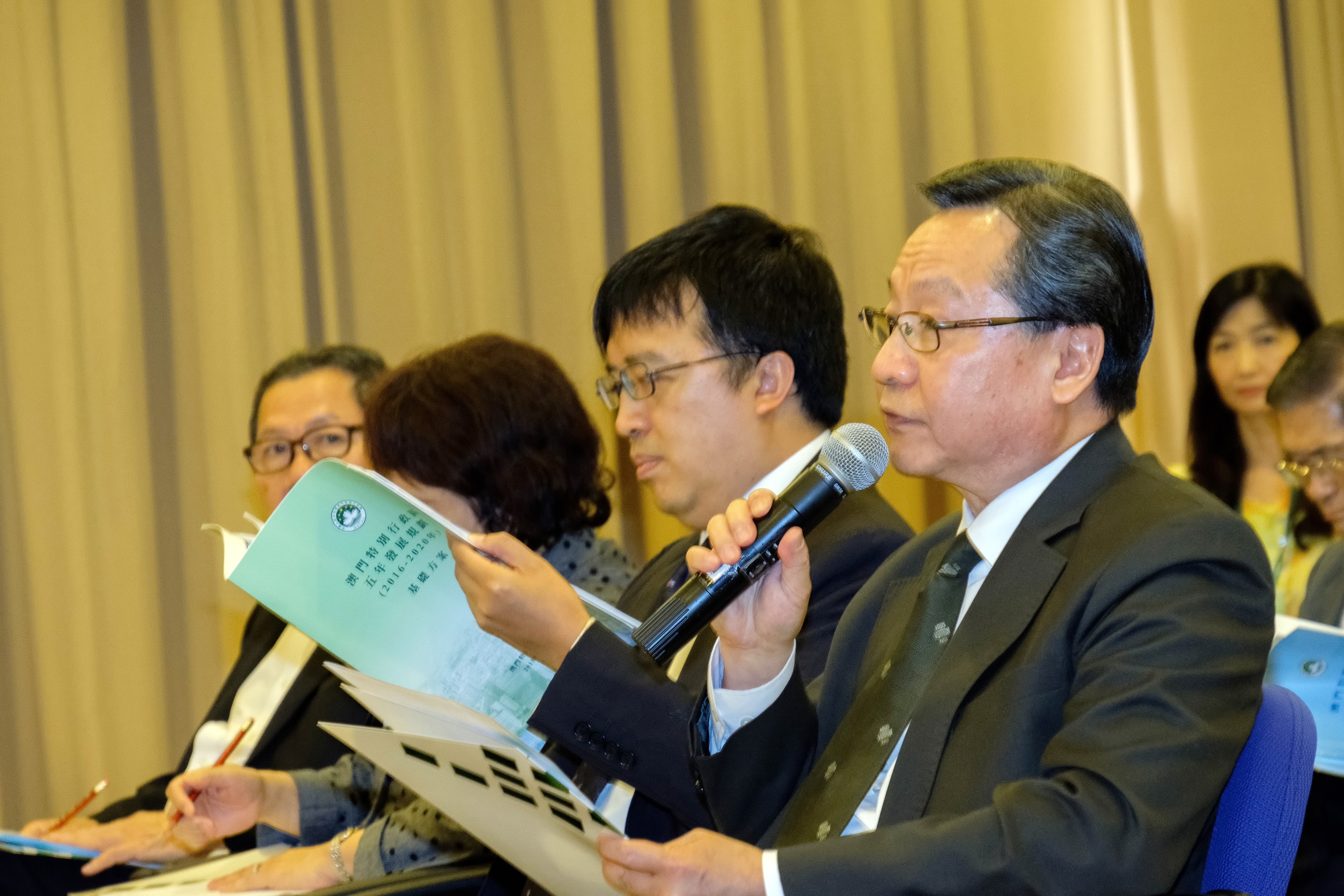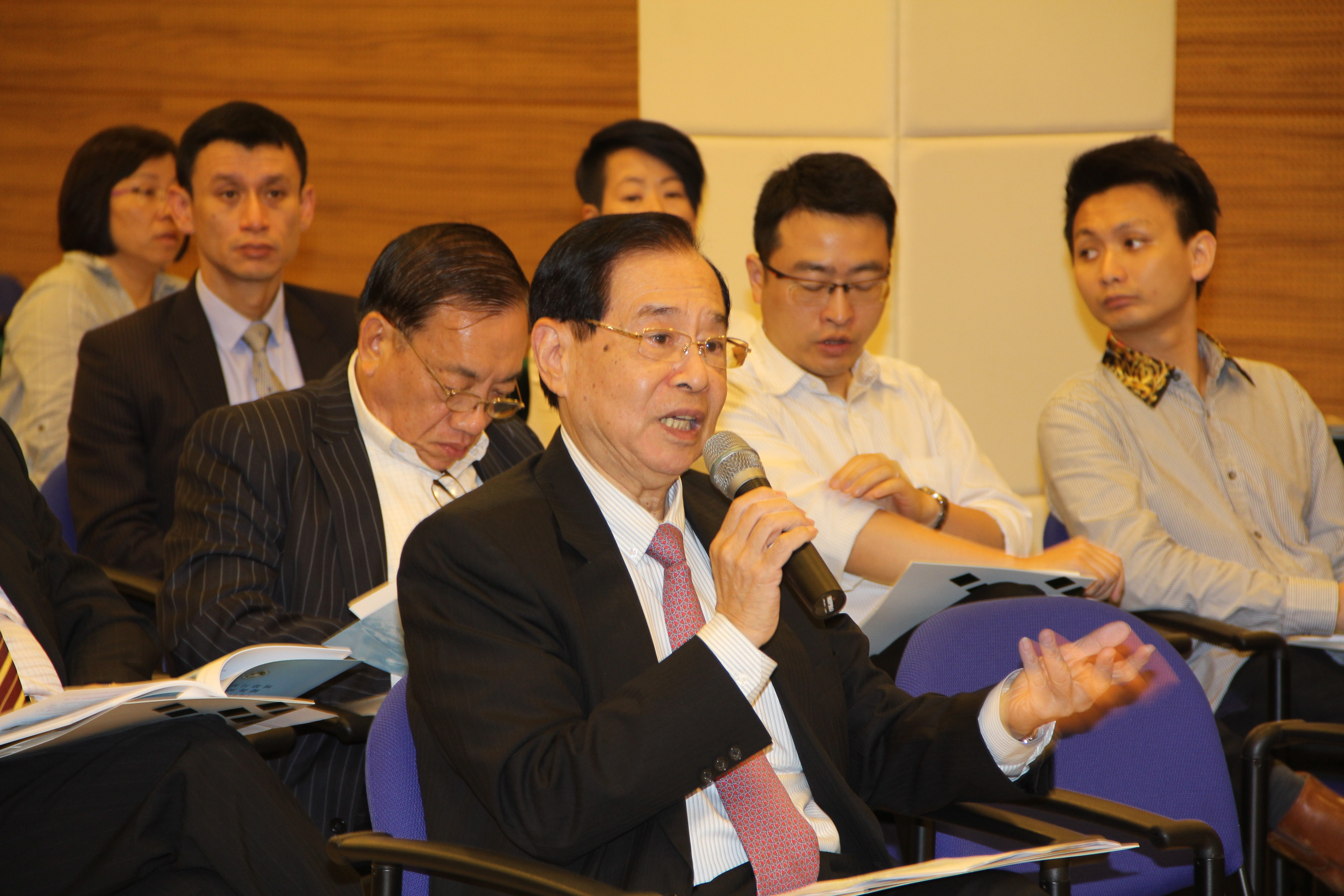 Kou Hoi In, Presidente da direcção da Associação Comercial de Macau, António Chui Iok Lam, Presidente da Direcção da Associação Industrial de Macau e os representantes das associações subordinadas à Associação Comercial de Macau: Ma Chi Ngai Frederico, Ho Pui Fan, Tse Paulo, Lok Wai Tak, David Vong, Tang Hon Cheong, Vong Veng Hin, Tang Man Wa, Wong Ian Man, Leong Si Iao, Cheng WingYiu Daniel, Ng Tek Hang, Lee Koi Ian, Lam Kiang Chun; outros membros da Associoação Industrial de Macau: Tang Kuan Meng José, Fong Son Kin, Lei Si Tai, Lau Fong Leng e Fong Ka Lam, um total de 21 participantes apresentaram sucessivamente as respectivas opiniões. Ao mesmo tempo, o Presidente da direcção da Associação Comercial de Macau Kou Hoi In, o Presidente da Direcção da Associação Industrial de Macau, António Chui Iok Lam, o Presidente da Associação Comercial de Fomento Predial de Macau, Lok Wai Tak, o Presidente do Conselh da Associação de Convenções e Exposições de Macau, David Vong, e o Presidente da Ou Mun Peng Sek Sao Son Ip Seong Wui, Lam Vai Hong apresentaram respectivamente as suas opiniões escritas ao Coordenador do Gabinete de Estudos das Políticas.