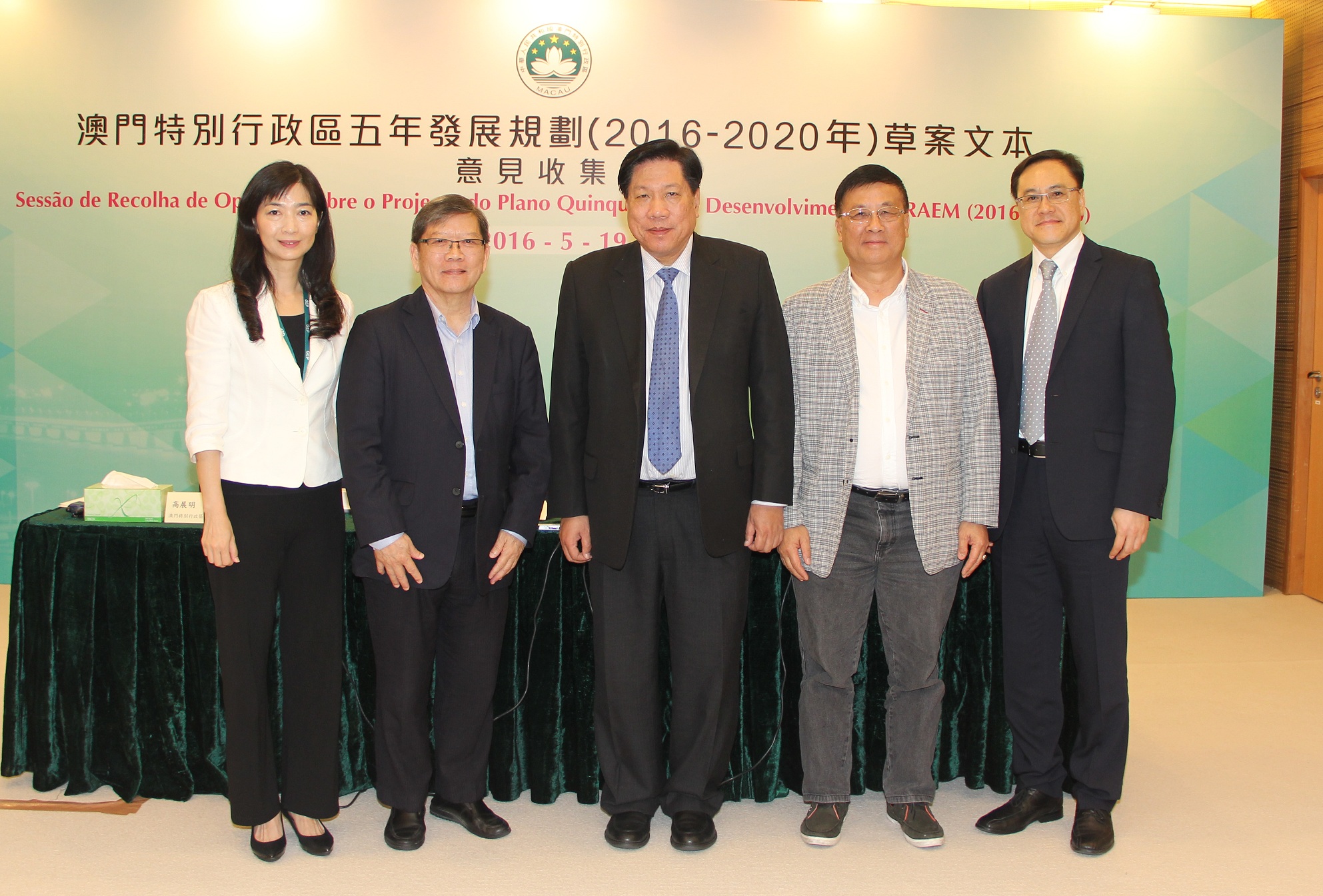 O projecto do Plano Quinquenal de Desenvolvimento da Região Administrativa Especial de Macau (2016-2020) foi divulgado no passado dia 26 de Abril, tendo assim iniciado os trabalhos da recolha de opiniões, com a duração de 2 meses. O Plano Quinquenal é o plano geral do desenvolvimento sócio-ecónomico da RAEM para os próximos cinco anos e o programa de acção de cooperação entre o governo e a população. Assim, uma ampla auscultação junto dos diversos sectores da sociedade, unindo a sabedoria da população e reunindo as forças da sociedade, são factores muito importantes para a definição e concretização do Plano Quinquenal. Por essa ordem de razão, o Gabinete de Estudos das Políticas, entidade responsável pelos trabalhos da presente recolha de opiniões, realizou na manhã de hoje (dia 19), nas suas instalações, a sessão de recolha de opiniões dedicada ao sector de turismo.