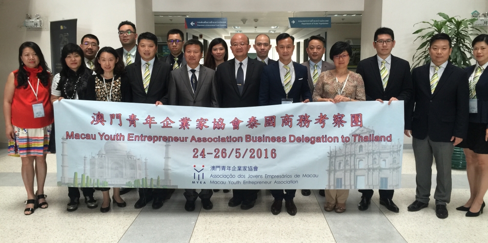 Por outro lado, os membros da Associação dos Jovens Empresários de Macau, além da participação na THAIFEX-World of Food Asia 2016, visitaram ainda diferentes organismos da Tailândia. No decorrer da visita, reuniram-se com o Departamento de Promoção do Comércio Internacional, subordinado ao Ministério do Comércio da Tailândia, o Departamento Económico e Comercial da Embaixada da China na Tailândia e a Associação Comercial de Jovens Empresários Chineses na Tailândia, sendo recebidos, respectivamente, pelo Sub-director do Ministério do Comércio da Tailândia, Sr. SOMDET SUSOMBOON, Conselheira Económica da Embaixada da China na Tailândia, Sra. Zhang Peidong e Presidente Lee Kui Hsiung da Associação Comercial de Jóvens Empresários Chineses na Tailândia. No decorrer das visitas de cortesia, as duas partes mantiveram intercâmbio mútuo através de apresentação sobre ambiente de investimento, vantagens de negócios, o comércio de importações e exportações e as regras em vigor, assim como, o intercâmbio comercial entre jovens empresários de Macau e da Tailândia. Por sua vez, a Vogal Executiva do IPIM, Dra. Glória Batalha Ung, fez uma intervenção sobre a situação do investimento em Macau e as funções do IPIM, o Sr. Francisco Ho apresentou as trabalhos e actividades desenvolvidas pela Associação dos Jovens Empresários de Macau.