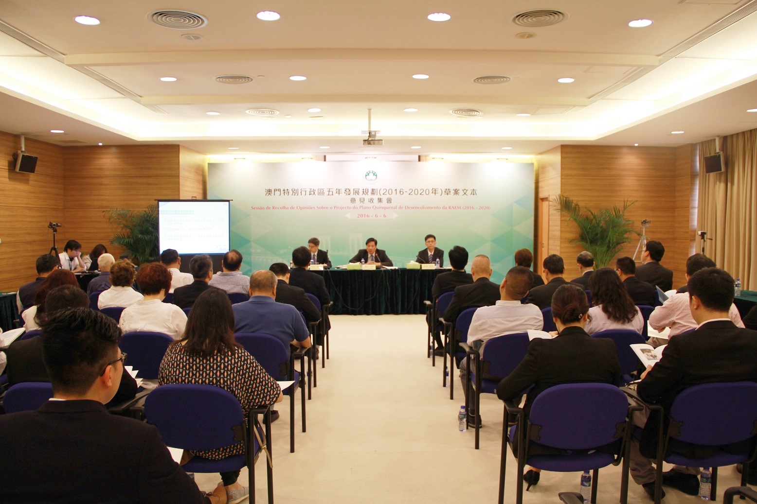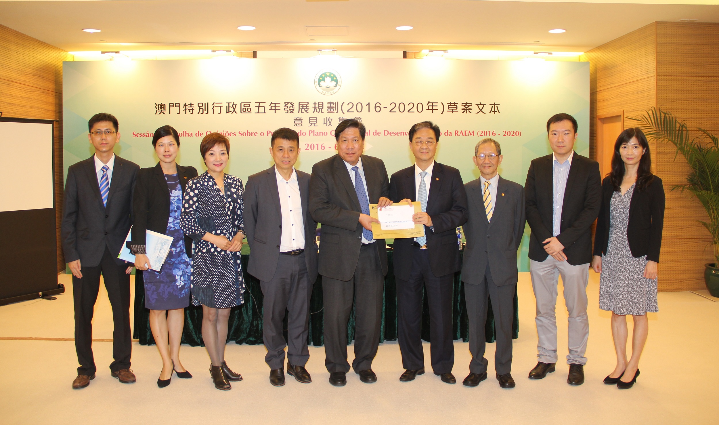 Os presentes reconheceram no geral e expressaram apoio ao primeiro Plano Quinquenal elaborado pelo Governo da RAEM, tendo apresentado opiniões e sugestões sobre o planeamento urbanístico, o Direito, o desenvolvimento da indústria criativa e cultural, entre outas matérias. Relativamente ao texto do documento, houve opiniões para a atenção do estatuto constitucional do documento, salientando da necessidade de reforço à execução e concretização do mesmo, ao ser elaborada a versão autêntica deverá ter em conta o devido cálculo da dimensão populacional, a recolha de dados e os trabalhos de gestão, referindo ainda que o conteúdo do documento sobre as questões da educação, da saúde, dos recursos humanos, dos idosos, entre outras, terá de ser reforçado. As opiniões relativas ao planeamento urbano incluem, a elaboração no mais breve possível o planeamento urbano geral, a desactualizada legislação que pode interferir no reordenamento dos bairros antigos, a renovação urbana deve ter em atenção reordenamento dos edifícios antigos do bairro Iao Hon, a reabilitação dos bairros antigos do Porto Interior, entre outras. Sobre o Direito, as opiniões apontam que o Governo deve elaborar um calendário para rever e melhorar os diplomas e regulamentos e, desenvolver as vantagens de Macau nas áreas judiciais e de arbitragem enquanto plataforma entre a China e os Países de Língua Portuguesa. Relativamente ao desenvolvimento da indústria cultural e criativa, as opiniões foram no sentido de um maior apoio às empresas criativas de jovens empresários, promover o desenvolvimento da indústria através de um reforço na reserva de quadros qualificados e serviços inovadores no sector financeiro inovador. Houve ainda opiniões que apoiam o lançamento de novas políticas gerais para o sector imobiliário, fomentar a construção de uma cidade ideal para habitação, promover o desenvolvimento saudável do sector imobiliário, reforçar a educação moral, incentivar os trabalhadores da Função Pública para um auto-aperfeiçoamento, para assim elevar as capacidades governativas.