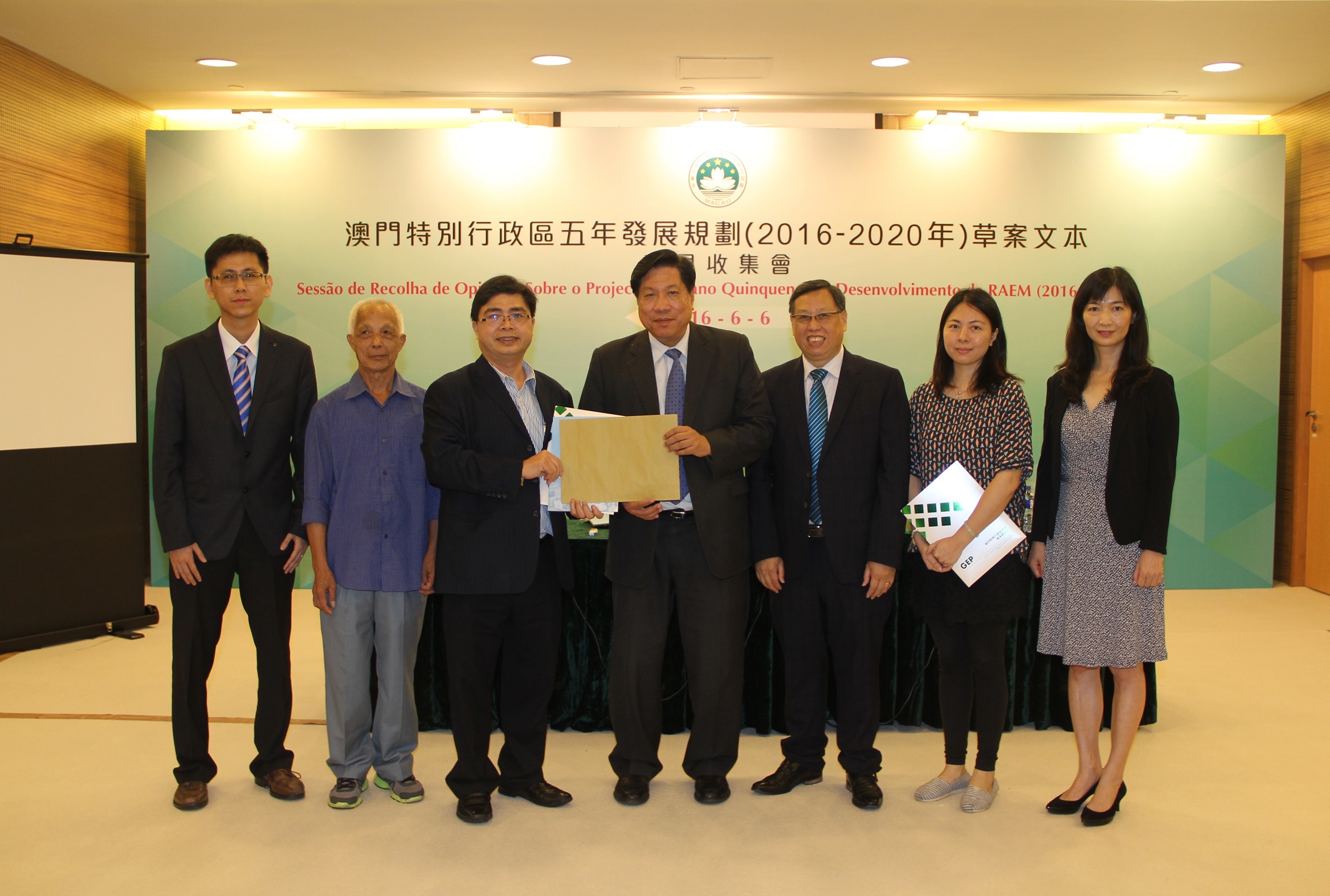 O projecto do Plano Quinquenal de Desenvolvimento da Região Administrativa Especial de Macau (2016-2020) foi já divulgado no passado dia 26 de Abril, tendo assim iniciado os trabalhos da recolha de opiniões, com duração de 2 meses. O Gabinete de Estudos das Políticas, responsável pelos trabalhos da presente recolha de opiniões, realizou hoje (6 de Junho), na parte da manhã, nas instalações do Gabinete, a sessão de recolha de opiniões junto das associações do sector imobiliário e das associações conterrâneas. O Coordenador do Gabinete, Lao Pun Lap, o Chefe Funcional, Kou Chin Meng, e o investigador, Lin Son Sam, estiveram presentes na reunião e auscultaram as opiniões das individualidades presentes.