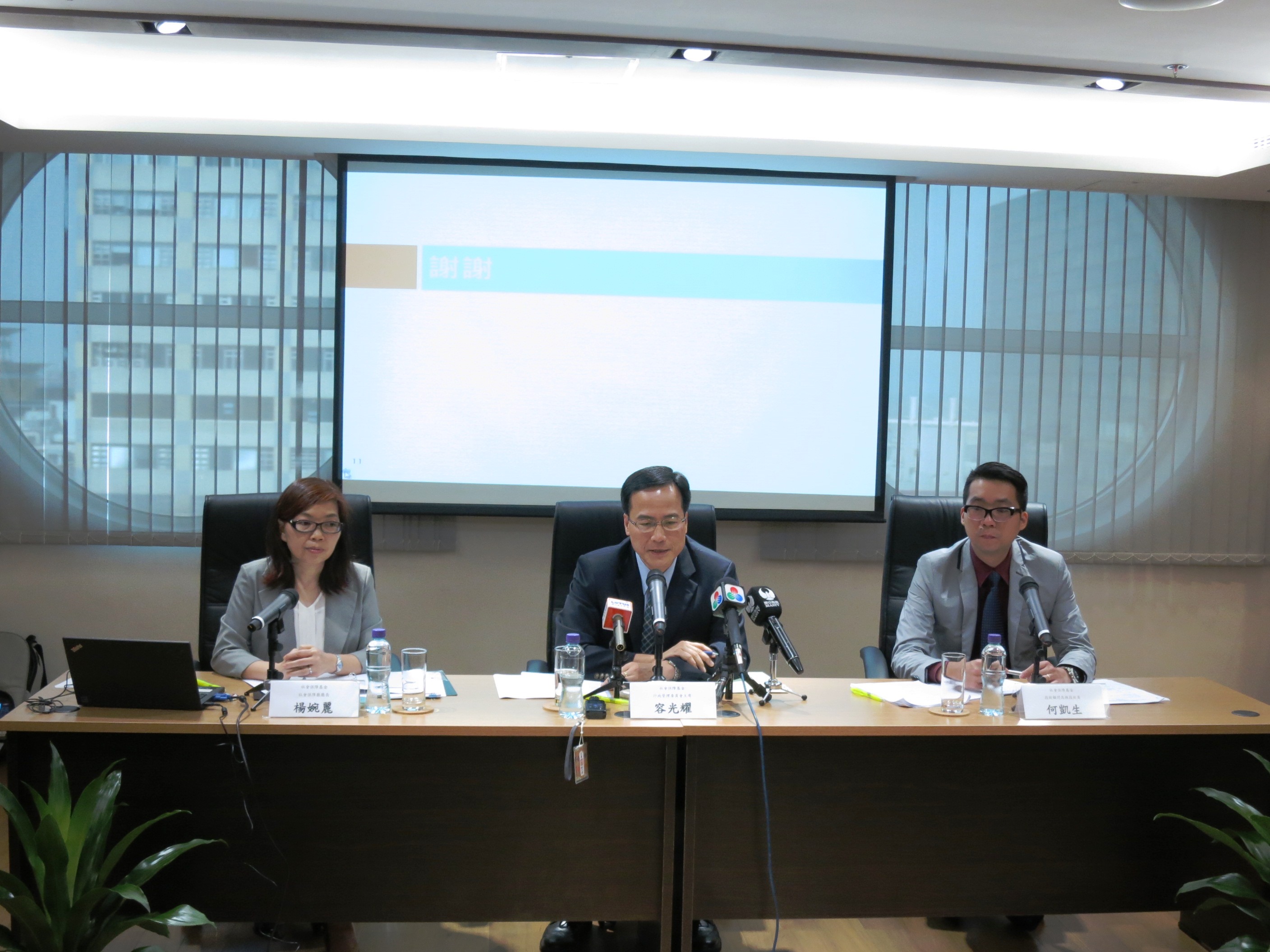 O Presidente do Conselho de Administração do FSS, Iong Kong Io, referiu no seu discurso proferido que, a proposta de lei do regime de previdência central foi discutida no Conselho Executivo nos dias anteriores e posteriormente submetida à Assembleia Legislativa. A diferença principal entre a proposta de lei e a proposta de consulta realizada no ano 2014 prende-se com os dois pontos seguintes, isto é, por um lado, foi adoptado o salário mínimo como o fundamento de estabelecimento de limites máximo e mínimo de contribuições pagas por empregadores e trabalhadores no plano de contribuição conjunta, por outro lado, foi adaptado o plano de reversão de direitos para calcular os direitos acumulados de contribuições pagas pelos empregadores que os trabalhadores podem obter no fim de relações de trabalho.