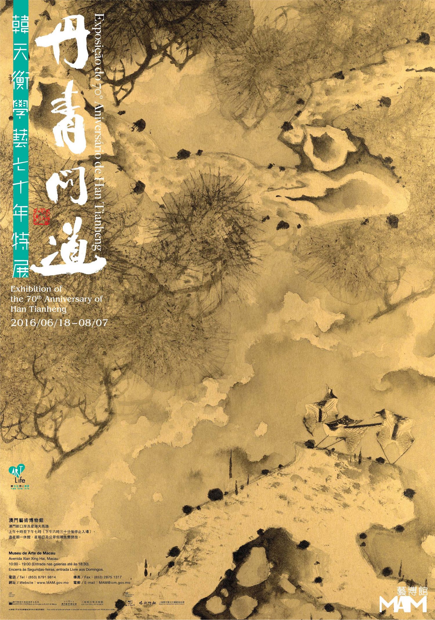 A “Exposição do 70º Aniversário de Han Tianheng” estará patente no MAM (endereço: Av. Xian Xing Hai, Macau) até ao dia 7 de Agosto, sendo o preço dos bilhetes de MOP5. O Museu encerra à Segunda-feira, sendo a entrada livre ao Domingos e dias feriados. Para mais informações, é favor ligar para o telefone n.º 8791 9814, durante o horário de expediente, ou aceder à página electrónica do MAM em www.MAM.gov.mo.