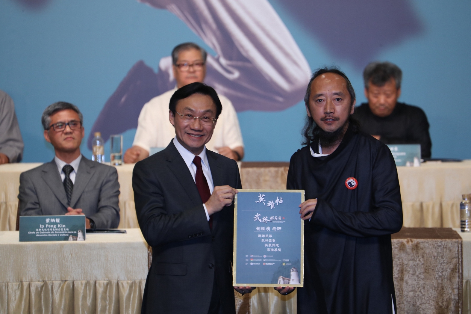 Durante a cerimónia, o Secretário para os Assuntos Sociais e Cultura Alexis, Tam Chon Weng, em representação da Organização do “Encontro de Mestres de Wushu”, apresentou as cartas-convite aos especialistas de wushu, nomeadamente Wu Guangyu, Wang Shiquan, Shi Yanzheng do Templo Shaolin, Liu Suibin, Shi Yanjun e Lu Yijie para participarem no referido acontecimento com vista à exibição aos cidadãos, turistas e atletas de wushu a arte quintessencial da cultura chinesa.