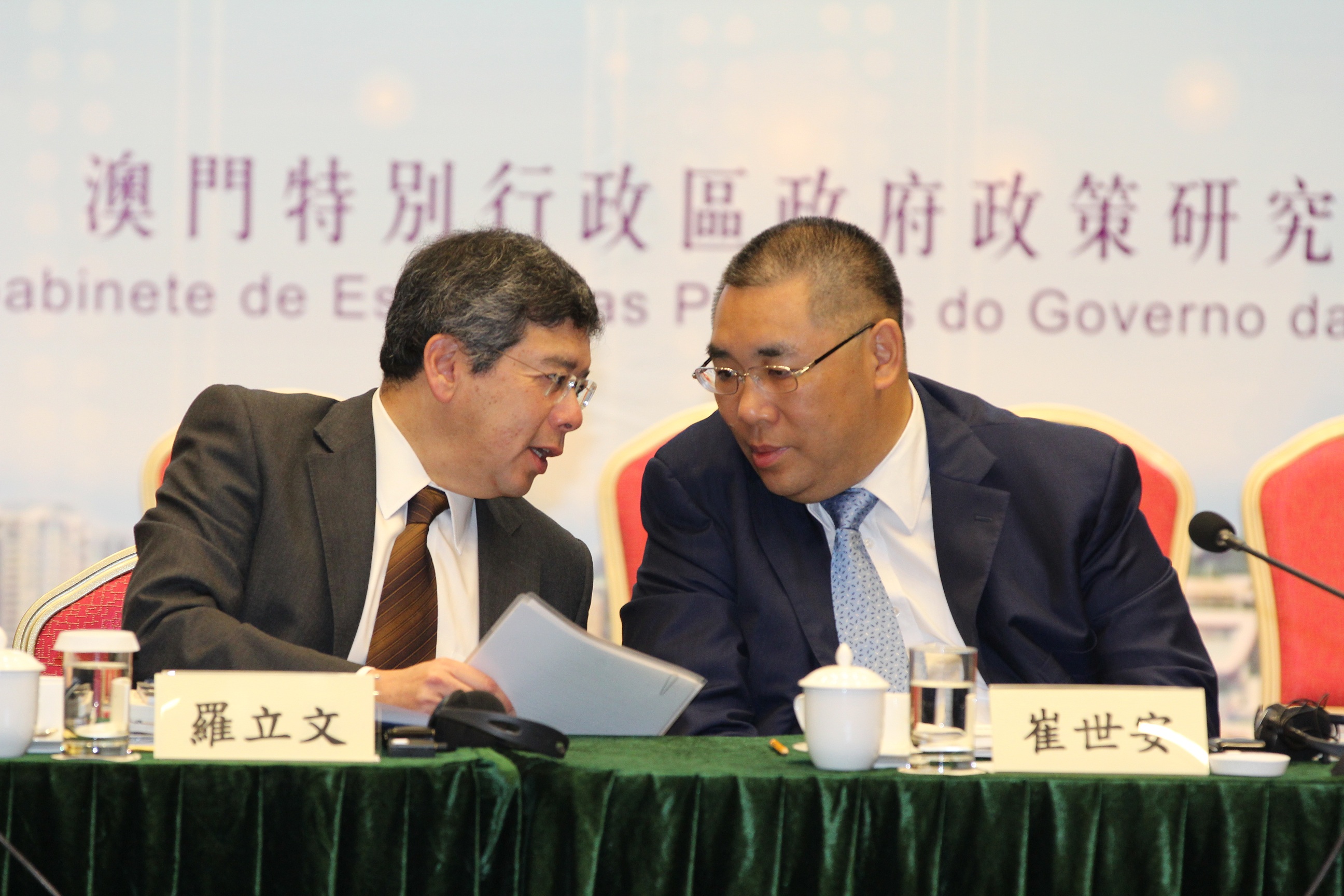 O Secretário para os Transportes e Obras Públicas, Raimundo do Rosário, a chefe do Gabinete do Chefe do Executivo e secretária-geral do Conselho Executivo, O Lam, e vários representantes dos serviços governamentais estiveram igualmente presentes. O Chefe do Executivo, Chui Sai On, ouviu com toda a atenção a apresentação da versão preliminar do relatório global sobre os Estudos Estratégicos para o Desenvolvimento Urbano da RAEM” elaborada pelo grupo temático responsável da Faculdade de Arquitectura da Universidade Tsinghua. Em seguida, o grupo temático iniciou a apresentação dos cincos relatórios temáticos sobre a indústria económica, a salvaguarda do património, a construção de habitações, o aproveitamento dos terrenos e o planeamento urbanístico.