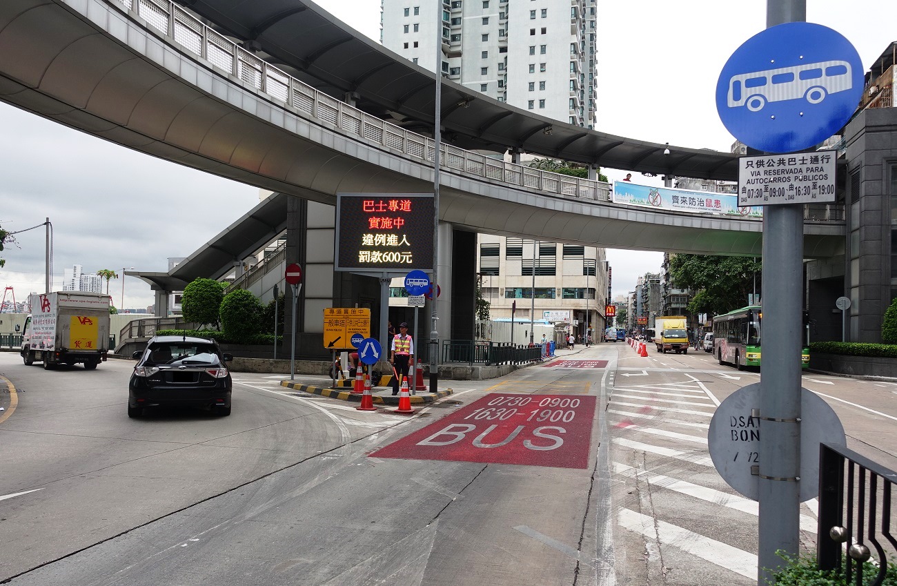 A entrada indevida no corredor exclusivo é punida com multa de 600 patacas