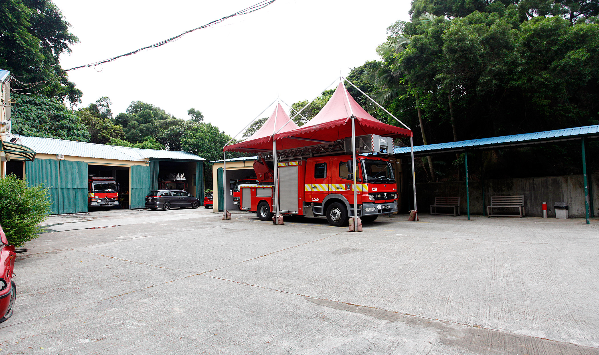 A ocorrência de condições atmosféricas adversas provocou a queda de árvores que por sua vez destruiu algumas partes das instalações do “Posto Operacional de Coloane” do Corpo de Bombeiros (CB). A fim de recuperar o normal funcionamento do posto, é necessário proceder à sua reconstrução, pelo que a DSSOPT se encontra a realizar o concurso público para a respectiva obra de reconstrução e prevê-se que o início da obra tenha lugar no princípio do próximo ano.