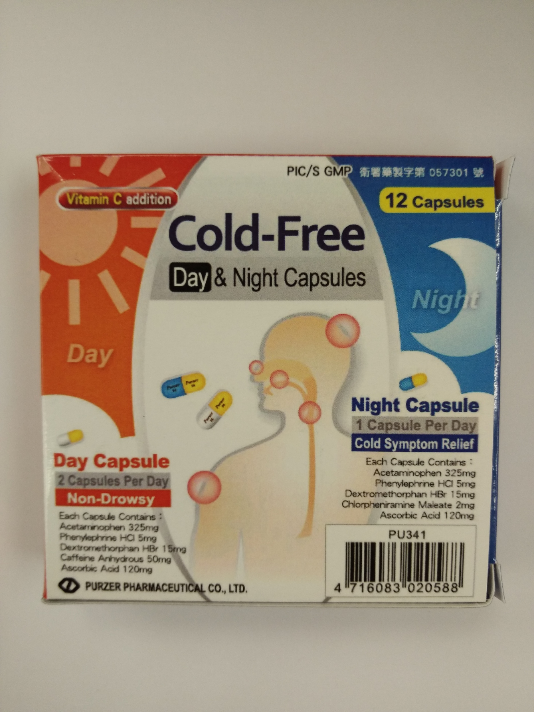 De acordo com um aviso do serviço competente de alimentos e medicamentos de Taiwan, o produto “Cold-Free Day & Night Capsules ” com o número de lote: 4321, 4324 e 4327, produzidos pela Purzer Pharmaceutical Co., Ltd, em Taiwan, durante ensaios de estabilidade a longo prazo, apresentou resultados inferiores aos critérios exigidos, relativamente a um dos componentes principais do medicamento, pelo que o fornecedor recolheu voluntariamente todos os lotes deste fármaco.